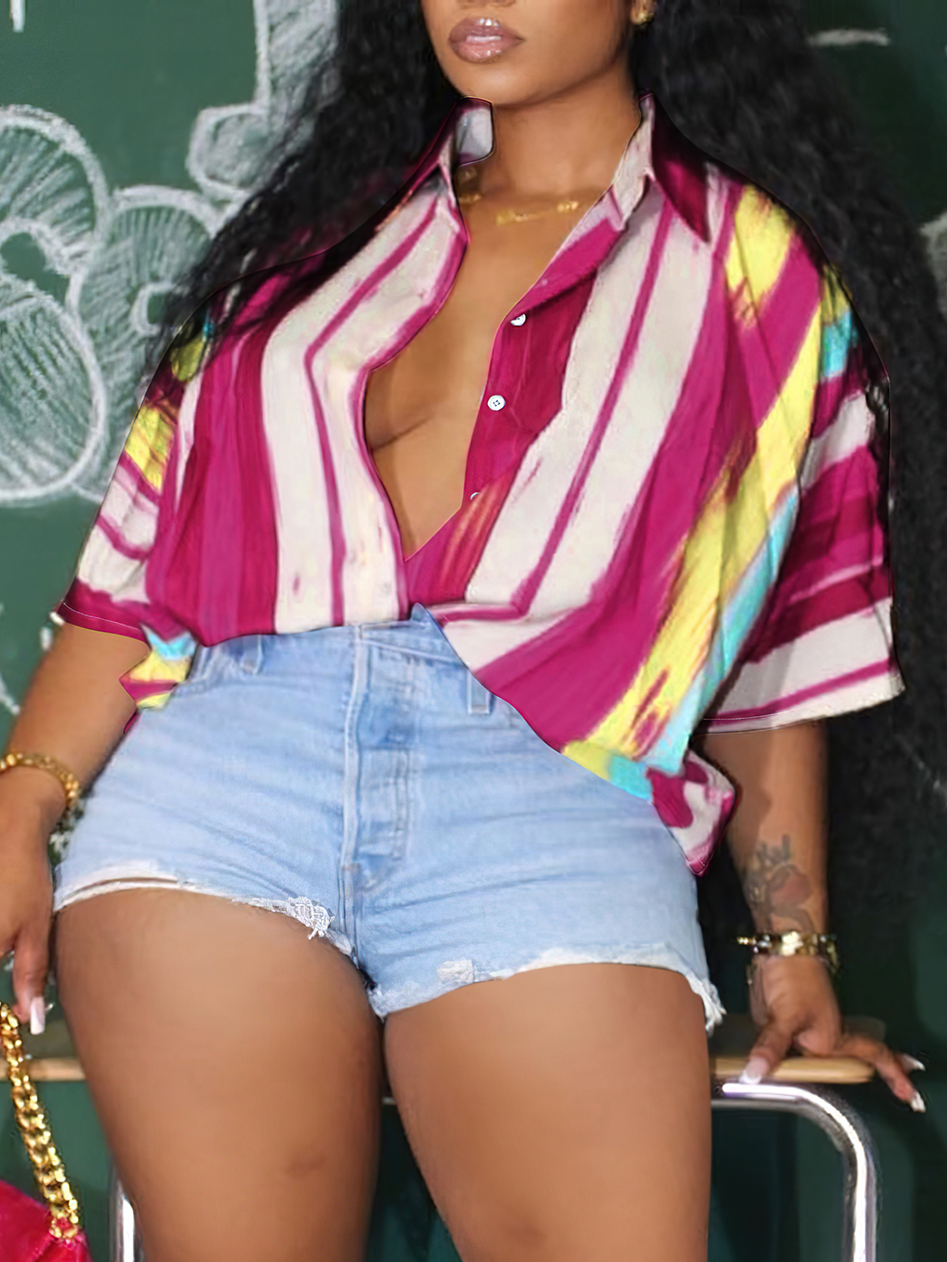 Home > Plus Size > Plus Size Top > Plus Size Shirt > LW Plus Size Turndown Collar Striped Shirt