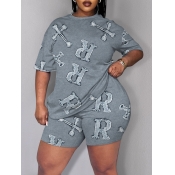 Home > Plus Size > Plus Size Two Pieces > Plus Size Two-piece Shorts Set > LW BASICS Plus Size Cross Letter Decor Shorts Set