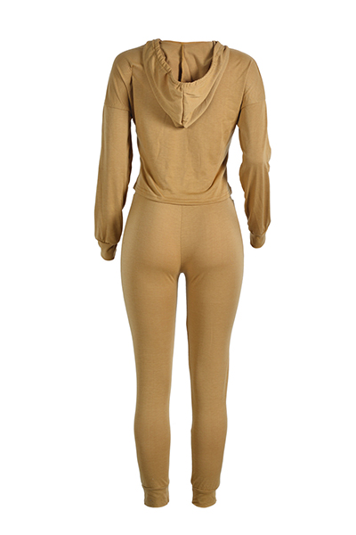 Home > Two Pieces > Leisure Hooded Collar Long Sleeves Drawstring Khaki Cotton Two-piece Pants Set