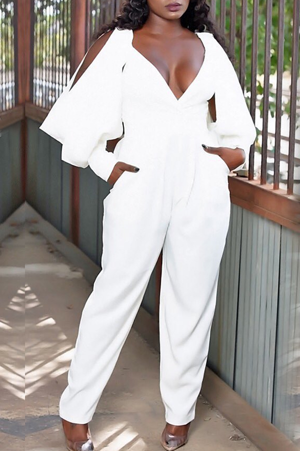 Home > Jumpsuits > Jumpsuit > Lovely Casual Deep V Neck White One-piece Jumpsuit