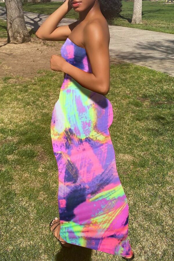 LW Casual Off The Shoulder Print Rose Red Ankle Length Dress