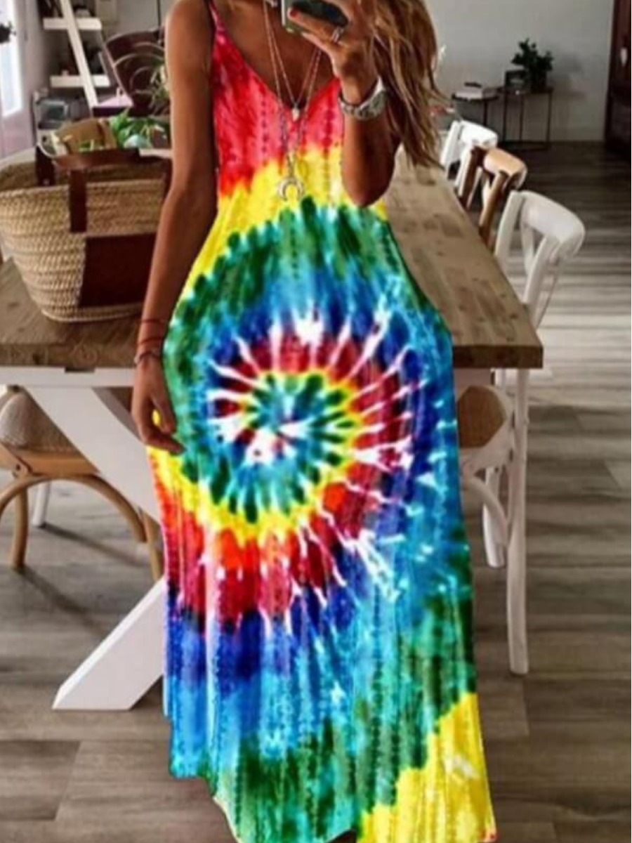 Home > Plus Size > Plus Size Dresses > Plus Size Dress > LW Plus Size Bohemian Tie-dye Red Ankle Length Dress
