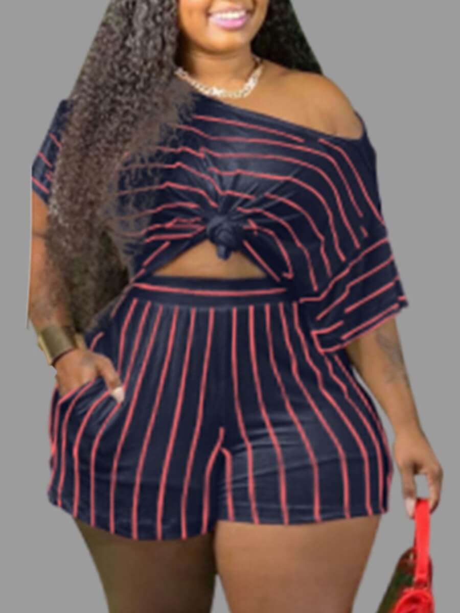 Home > Plus Size > Plus Size Two Pieces > Plus Size Two-piece Shorts Set > LW Plus Size Striped Stretchy Shorts Set