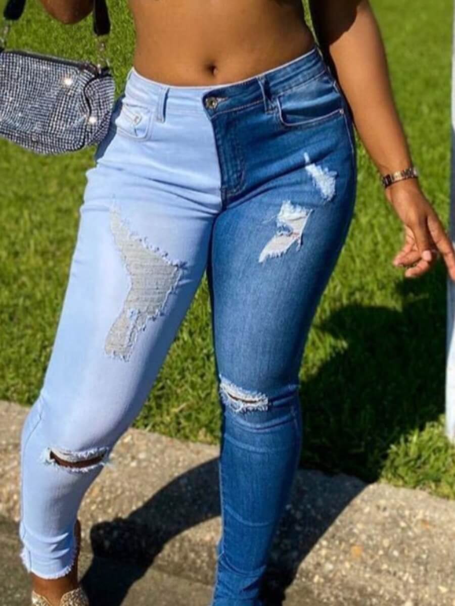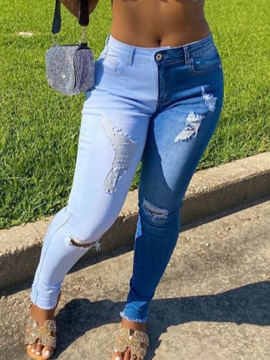 LW Medium Stretchy Broken Holes Skinny Blue Jeans