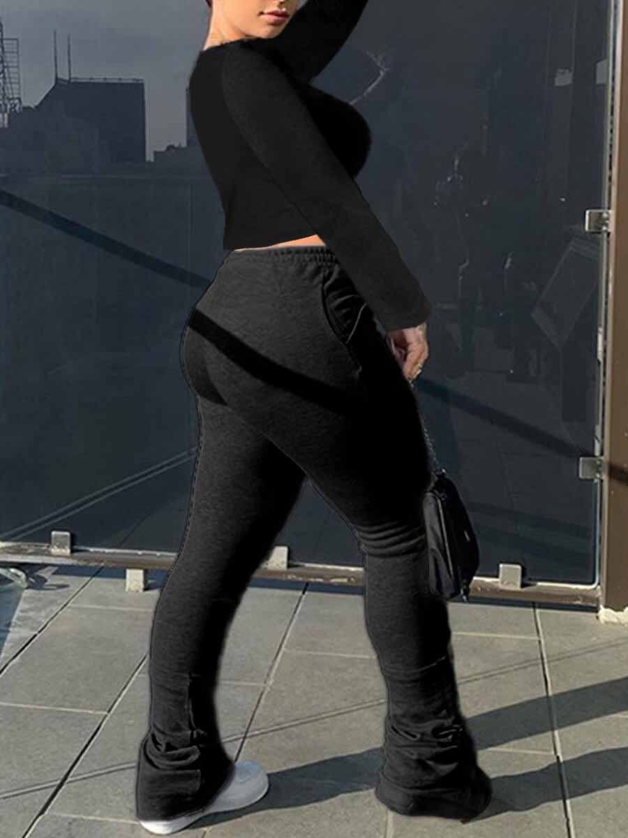 LW BASICS Crop Top Drawstring Stacked Tracksuit Set