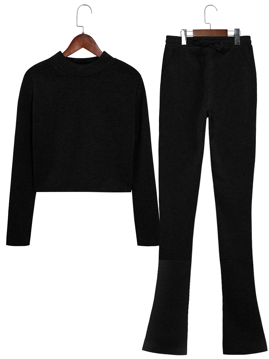 Home > Two Pieces > Two-piece Pants Set > LW BASICS Crop Top Drawstring Stacked Tracksuit Set