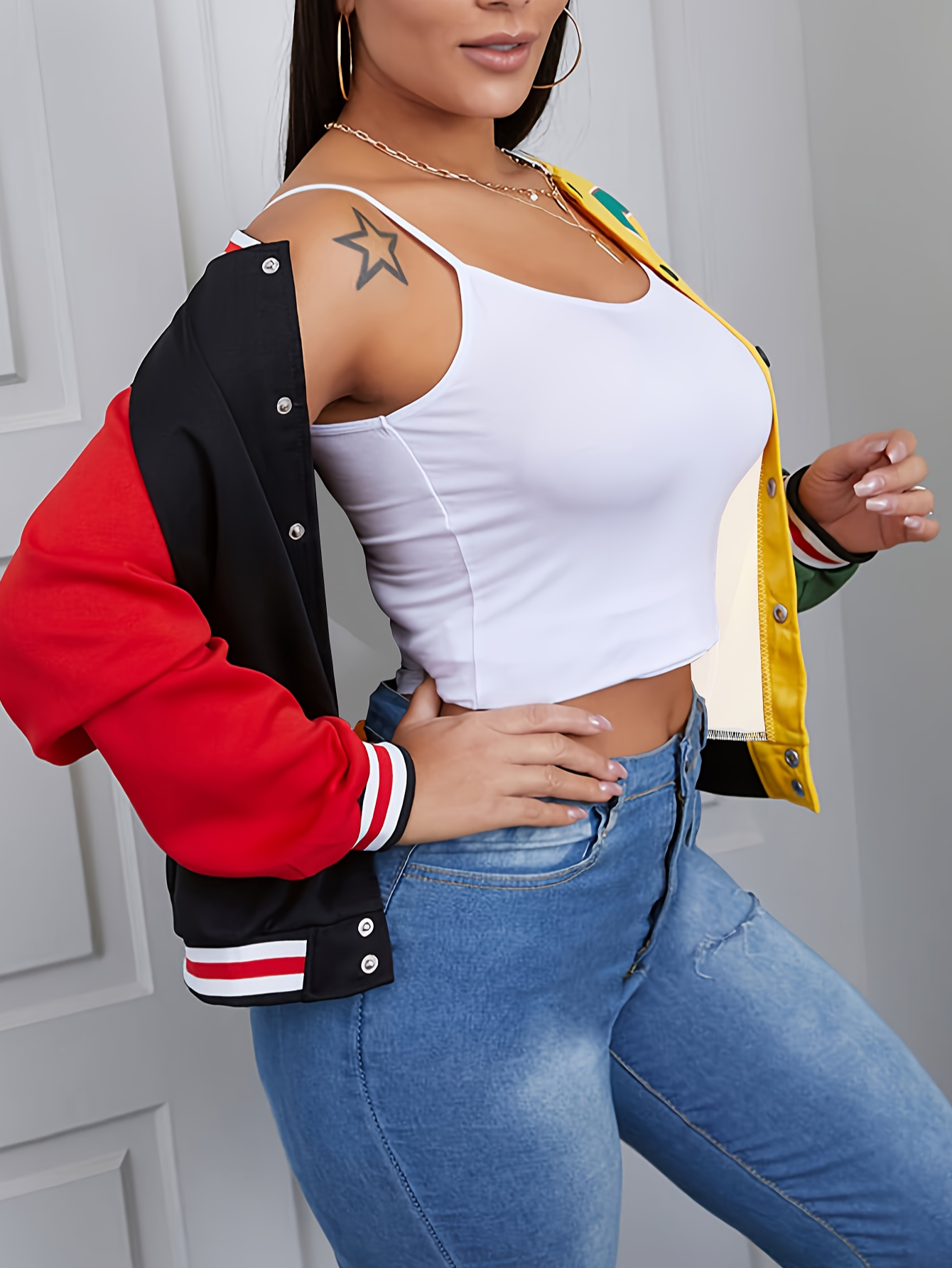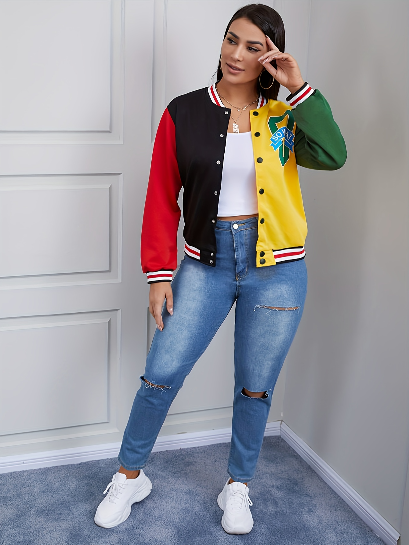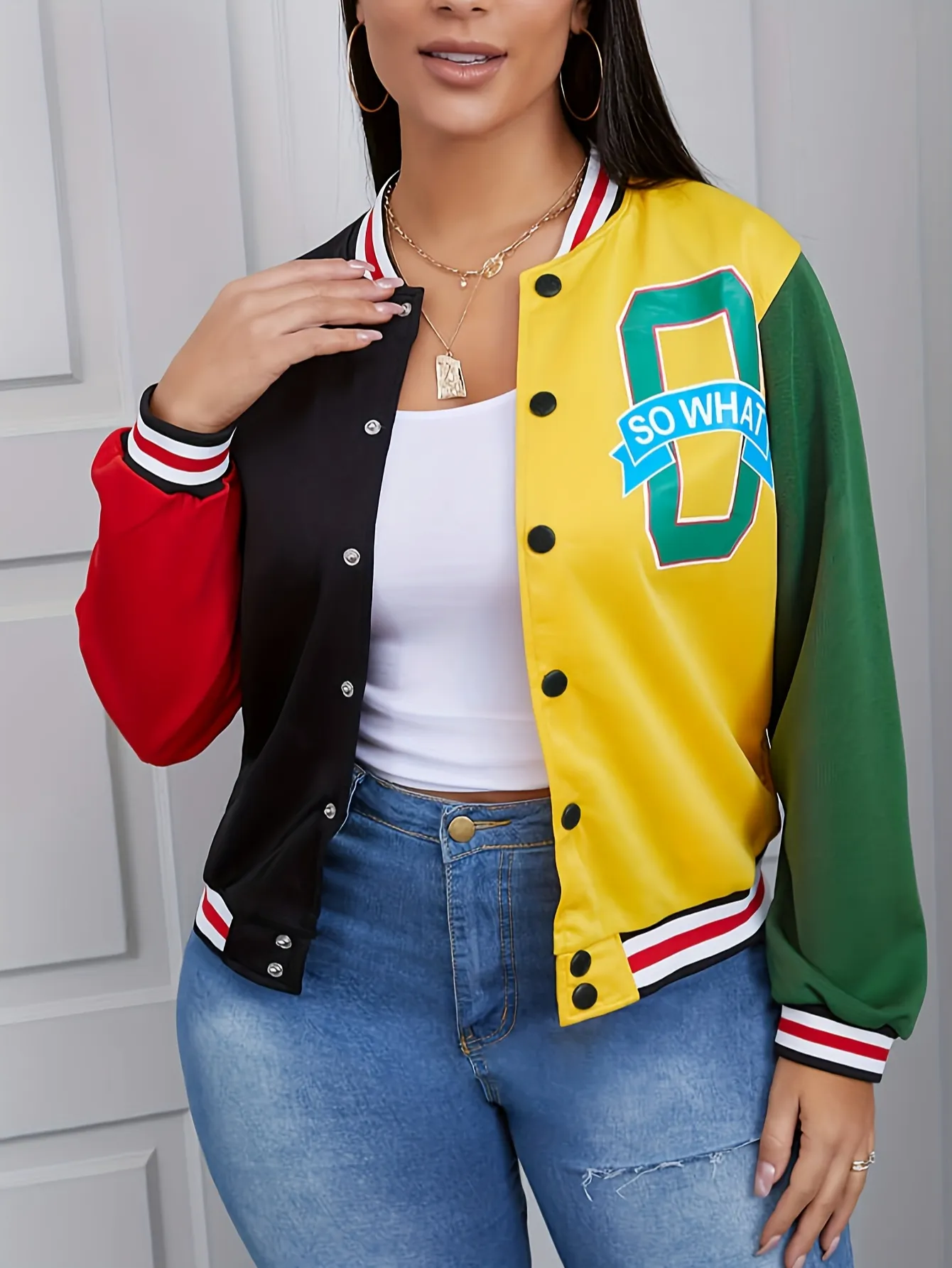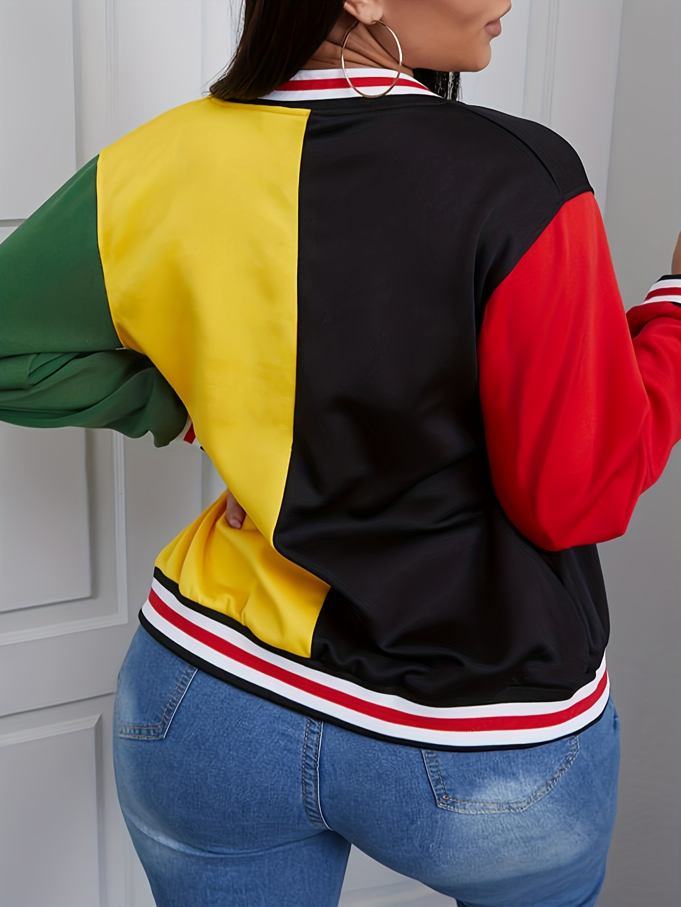 LW Letter Decor Striped Patchwork Coat