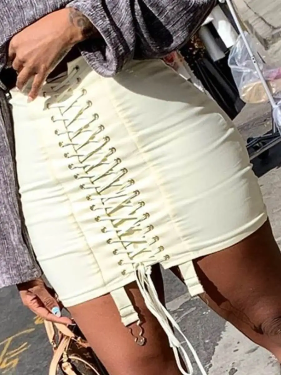 Home > Bottoms > Skirts > Lovely Stylish Bandage Design Apricot Skirt