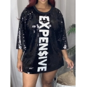 Home > Dresses > Mini Dress > LW SXY Round Neck Letter Sequined Dress