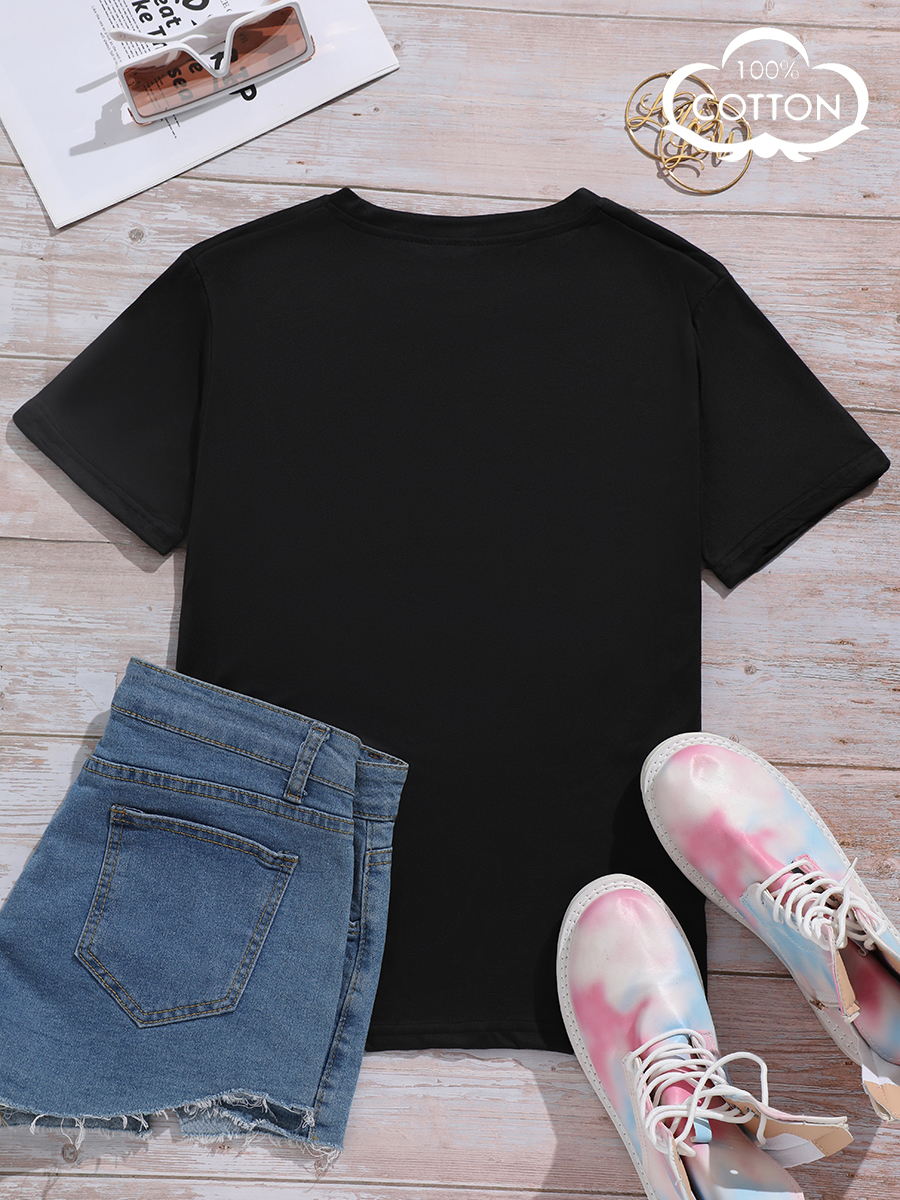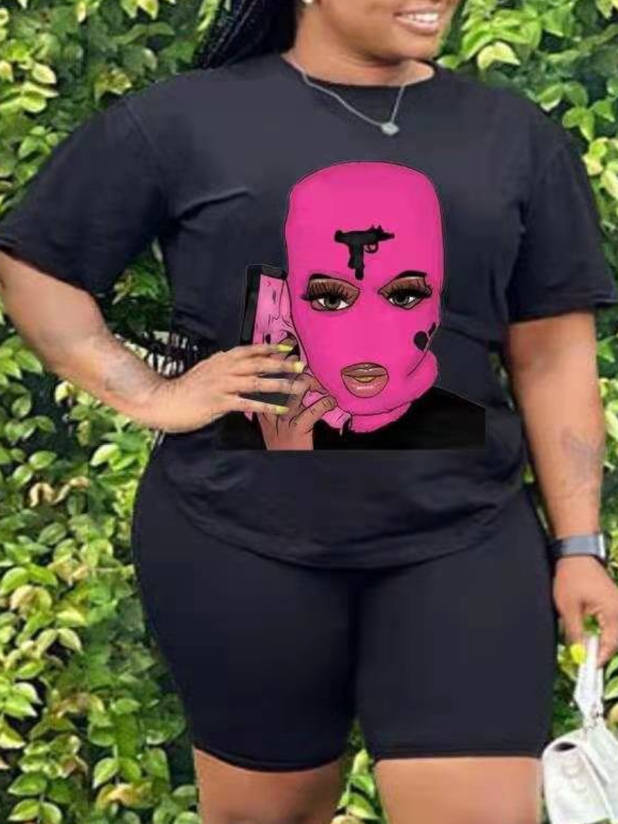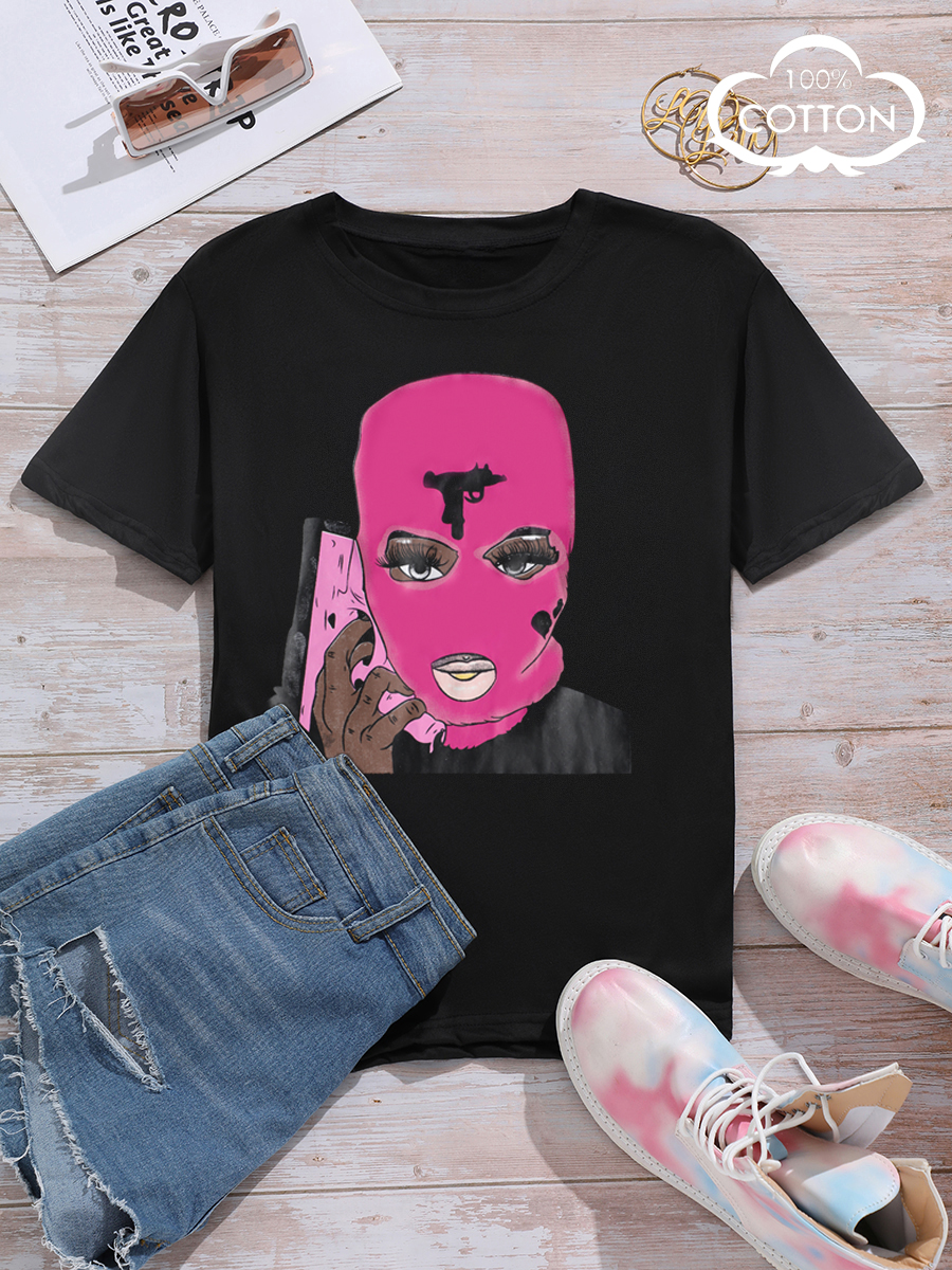 Home > Tops > T-shirt > LW COTTON Street O Neck Masked Face Print Black T-shirt