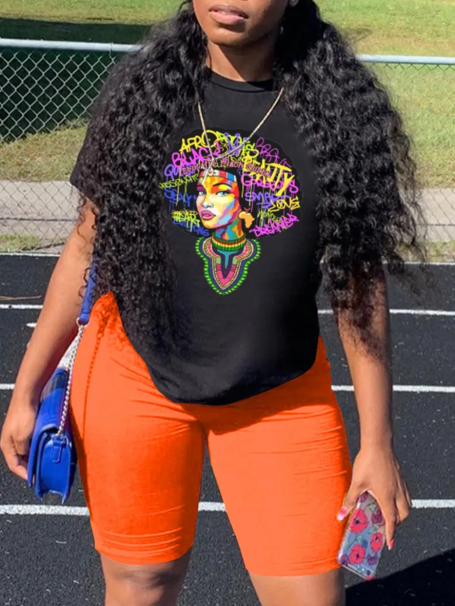 Home > Two Pieces > Two-piece Shorts Set > LW Graffiti Letter Print Shorts Set