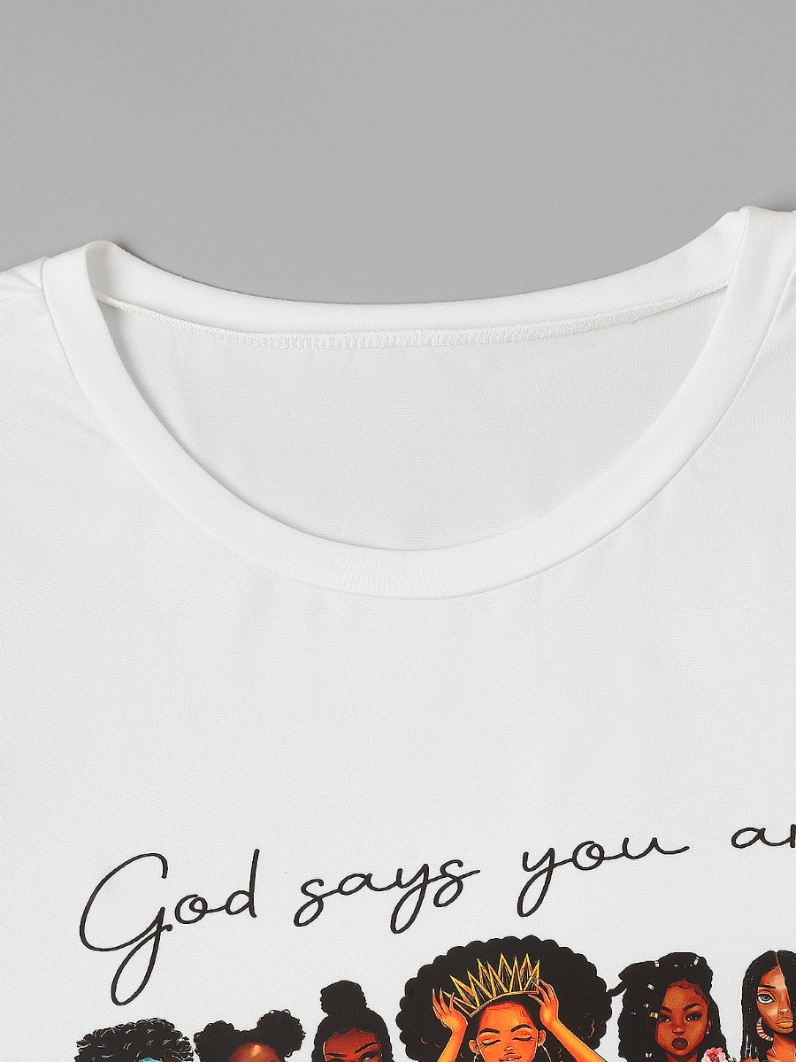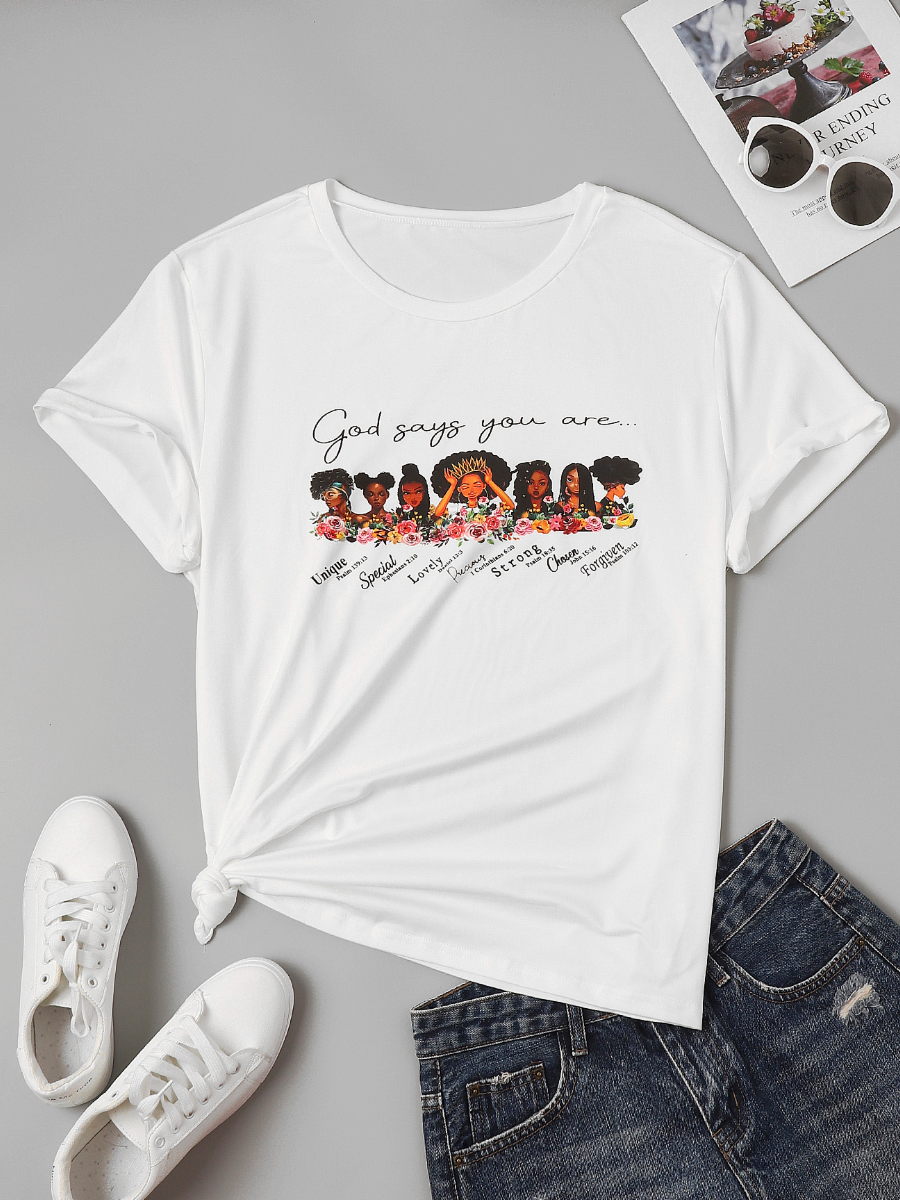 Home > Plus Size > Plus Size Top > Plus Size T-shirt > LW Plus Size Casual O Neck Letter Print Black T-shirt