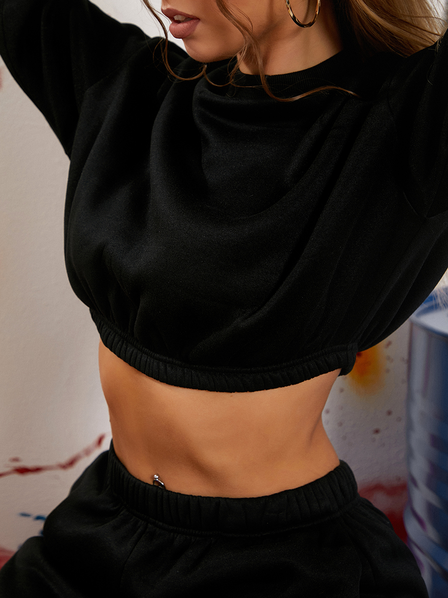 Home > Two Pieces > Two-piece Pants Set > LW Round Neck Crop Top Pants Set
