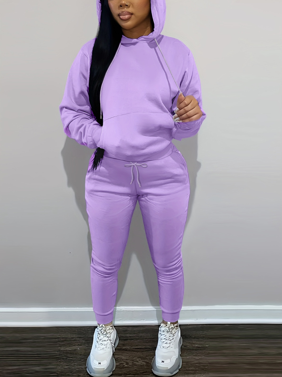 Home > Two Pieces > Two-piece Pants Set > LW BASICS Hooded Collar Drawstring Tracksuit Set