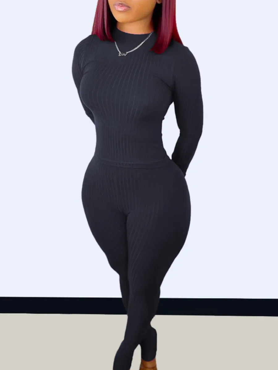 LW BASICS Rib Knit Skinny Pants Set
