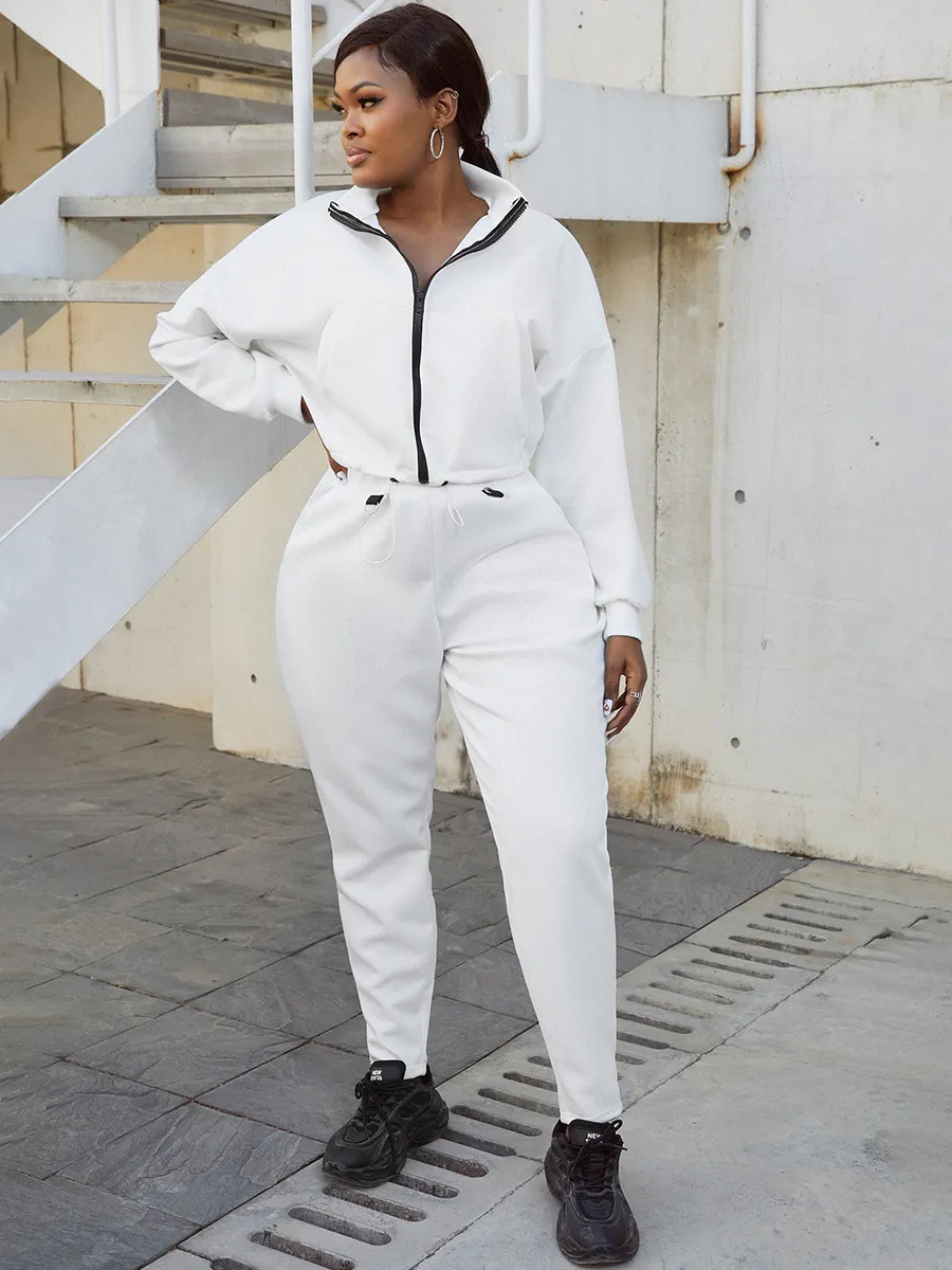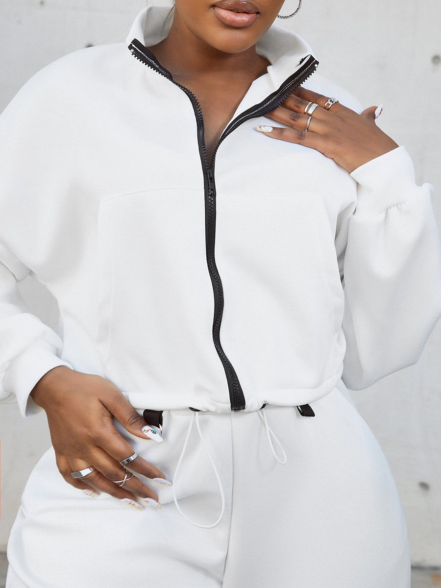 Home > Two Pieces > Two-piece Pants Set > LW Zipper Design Drawstring Tracksuit Set