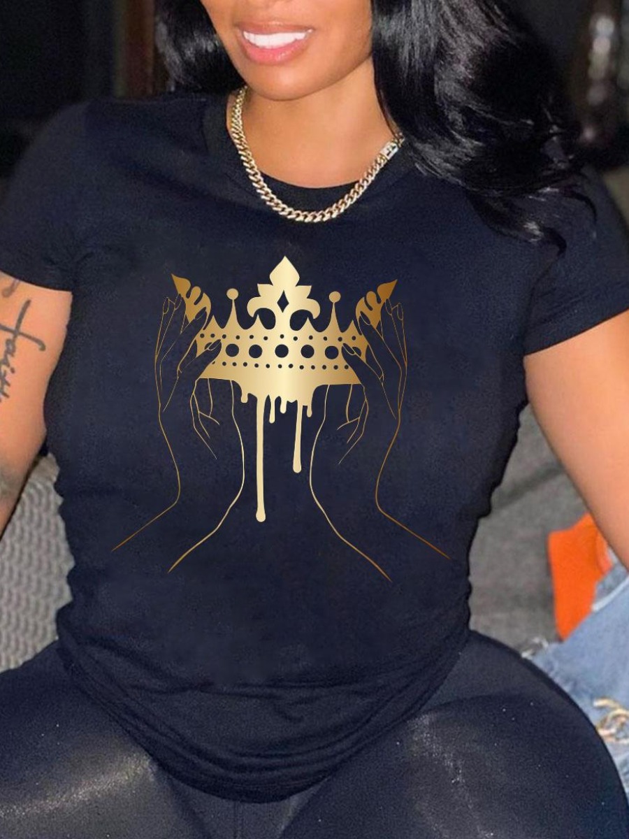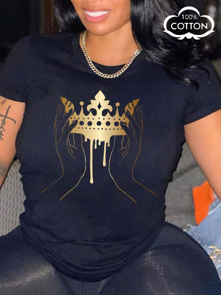 Home > Plus Size > Plus Size Top > Plus Size T-shirt > LW COTTON Plus Size Round Neck Crown Print T-shirt