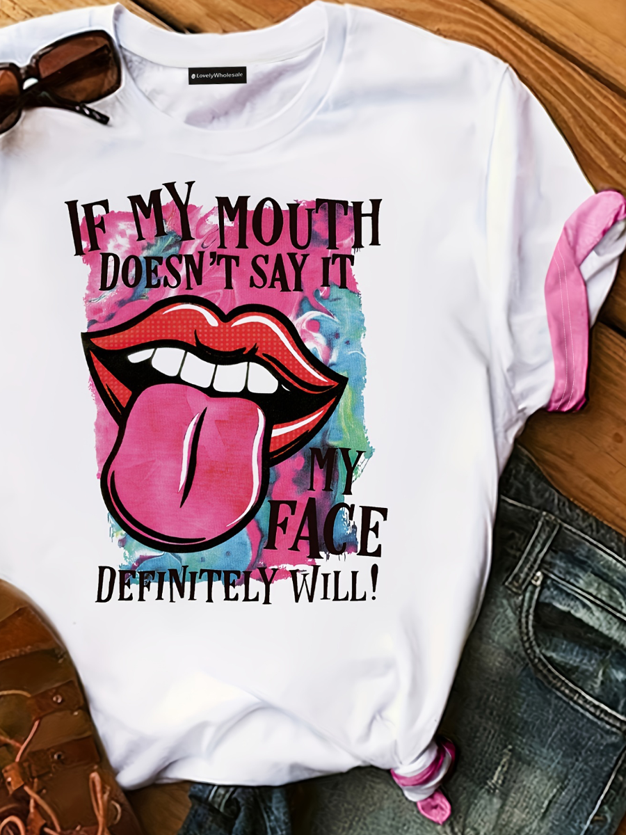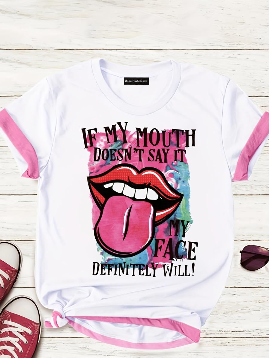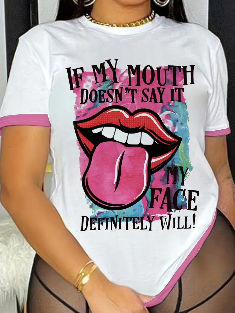 Home > Plus Size > Plus Size Top > Plus Size T-shirt > LW Plus Size Lip Letter Print T-shirt