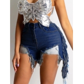 Home > Denim > Denim Shorts > LW High Stretchy Tassel Design Ripped Denim Shorts
