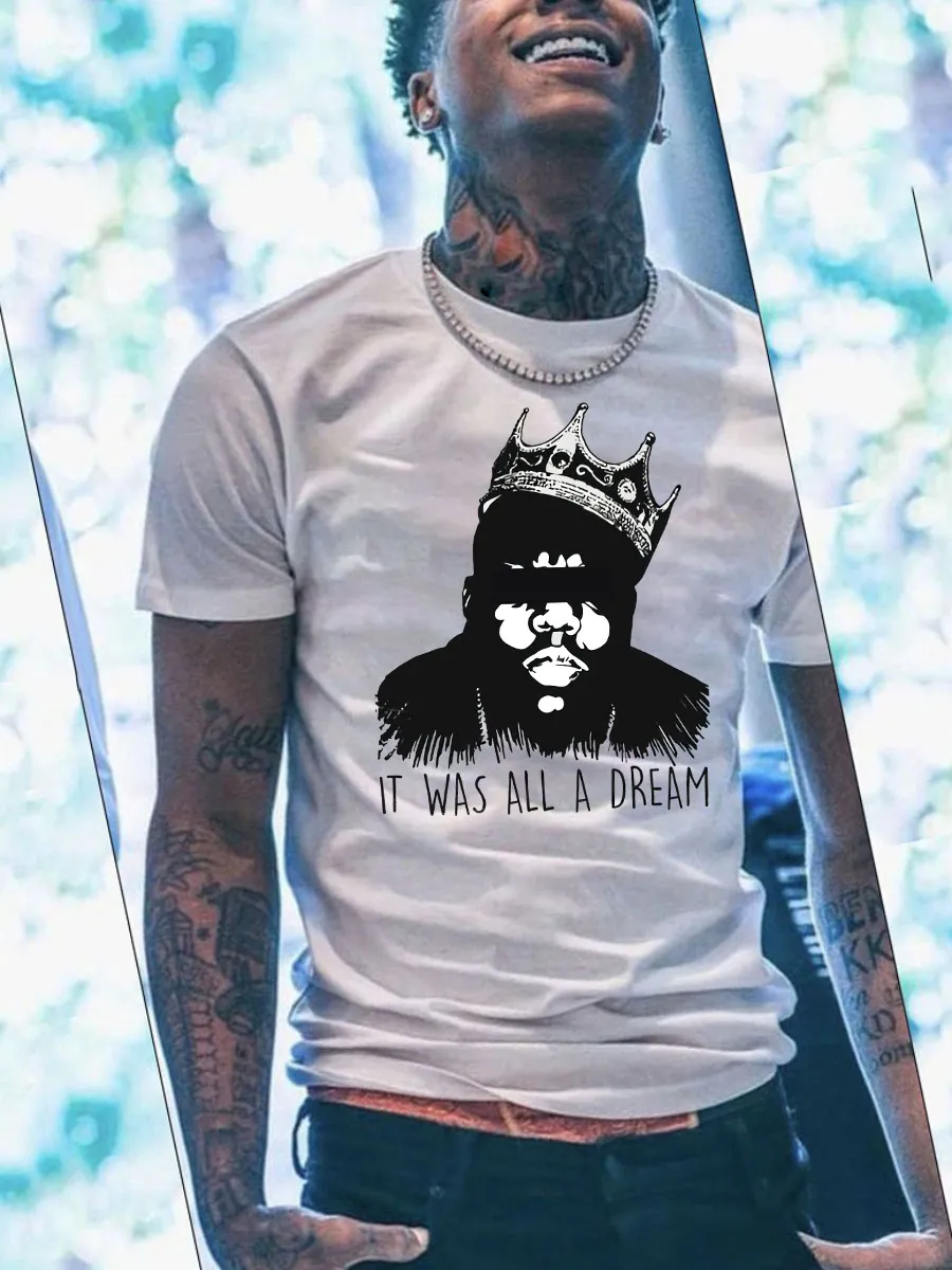 Home > Men Clothes > Top > T-shirt > LW Men Crown Figure Letter Print T-shirt