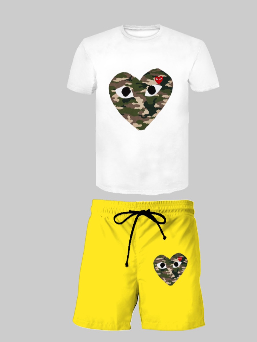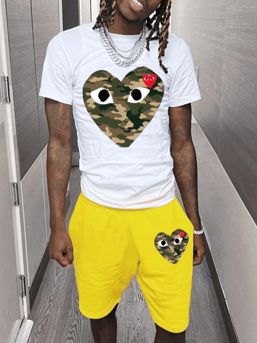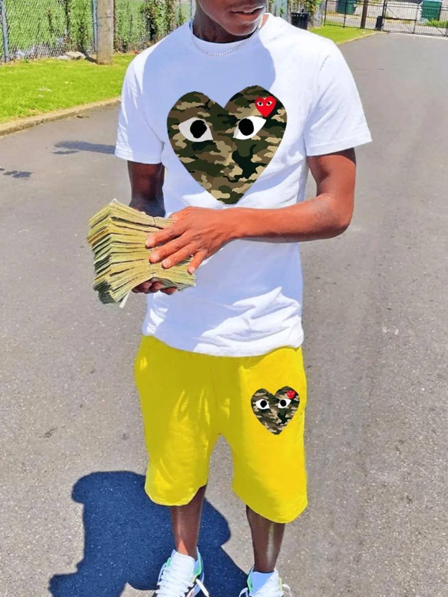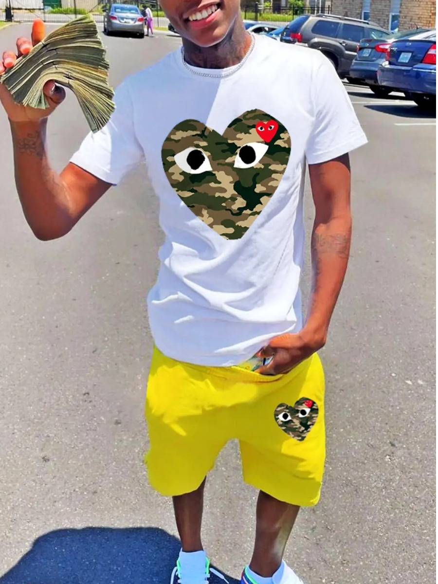 Home > Men Clothes > Two Pieces > Two-piece Shorts Set > LW Men Camo Heart Print Shorts Set