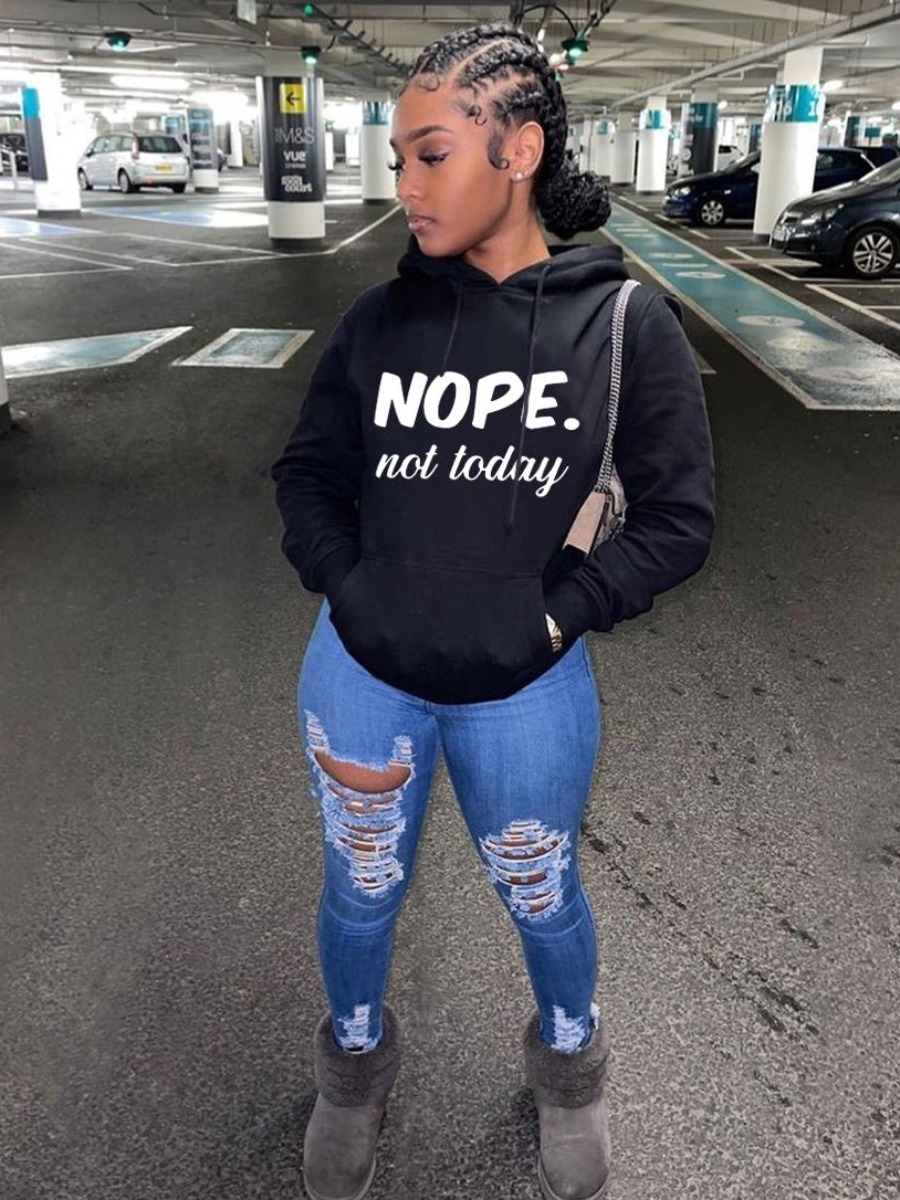 Home > Tops > Hoodie > LW Nope Not Today Letter Print Hoodie