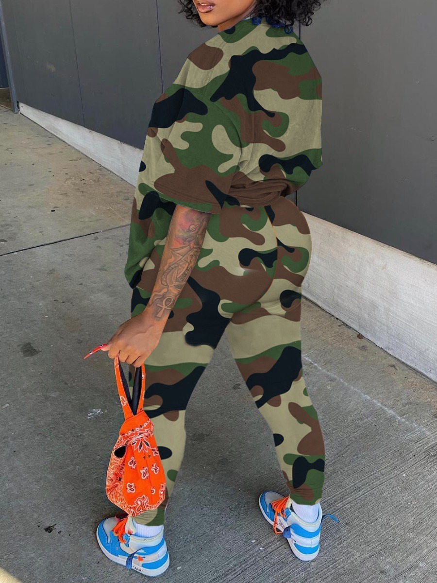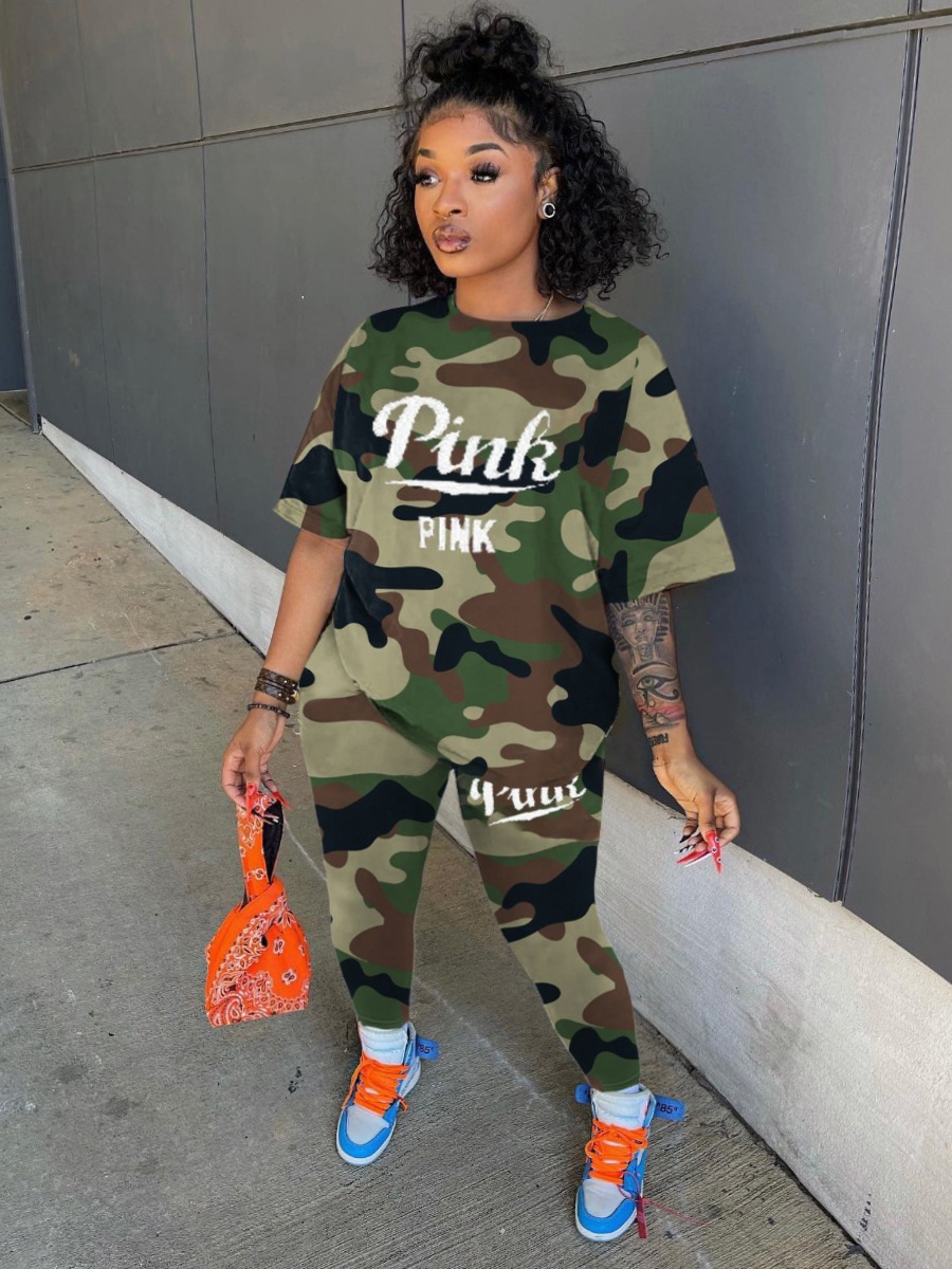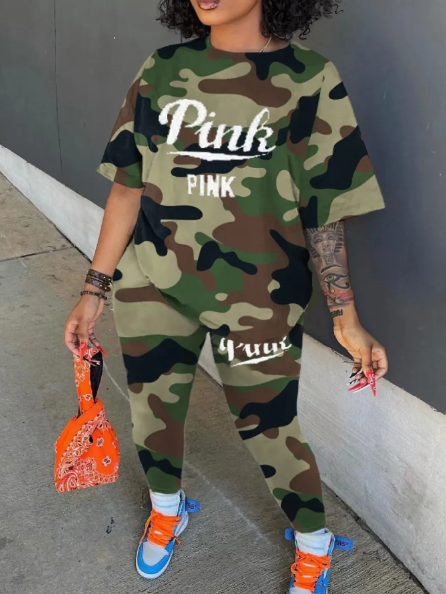 Home > Plus Size > Plus Size Two Pieces > Plus Size Two-piece Pants Set > LW Plus Size Camo Pink Letter Print Pants Set