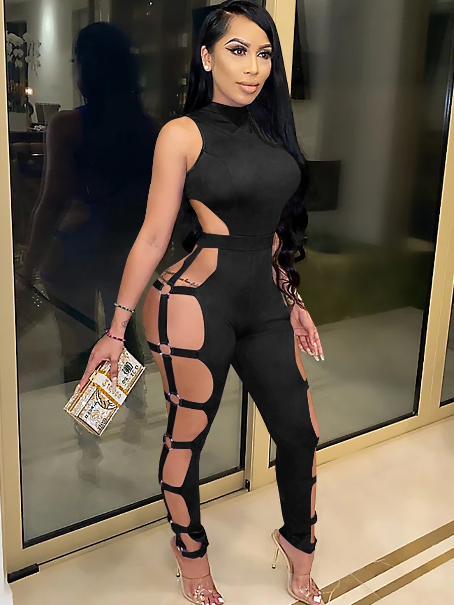 Home > Jumpsuits > Jumpsuit > LW SXY Cut Out Metal Ring Decor Skinny Jumpsuit