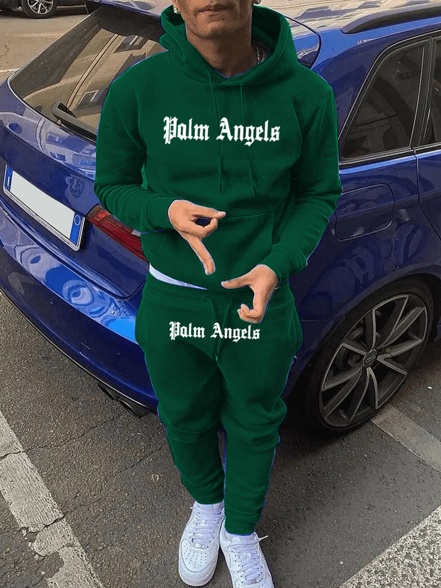 Home > Men Clothes > Two Pieces > Two-piece Pants Set > LW Men Letter Print Kangaroo Pocket Tracksuit Set