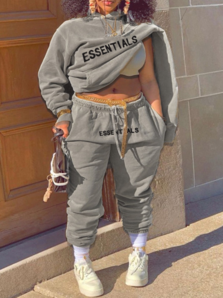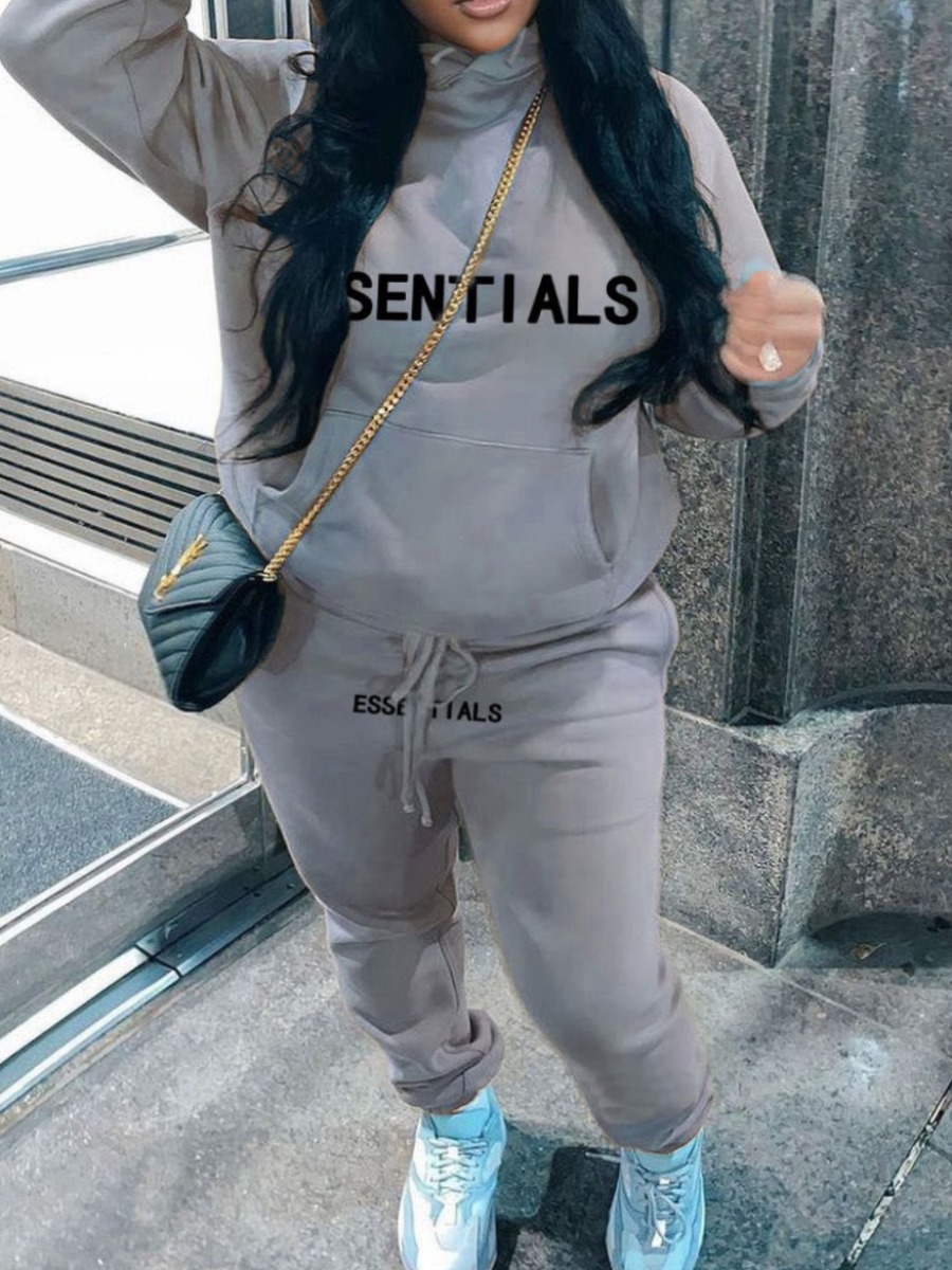 Home > Two Pieces > Two-piece Pants Set > LW Essentials Letter Print Kangaroo Pocket Tracksuit Set