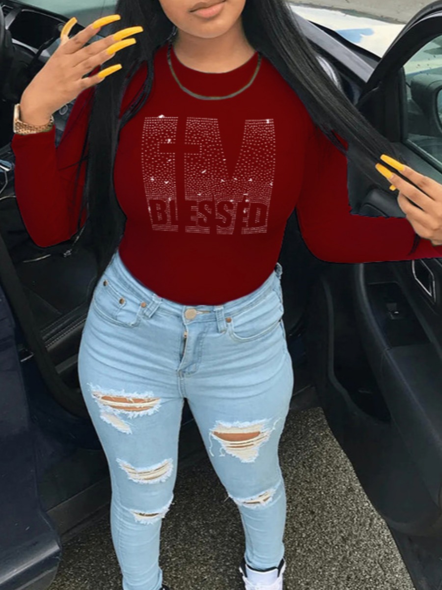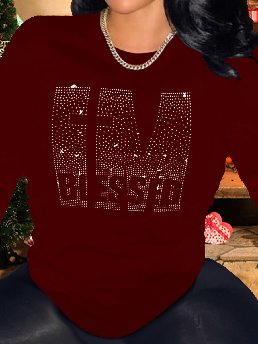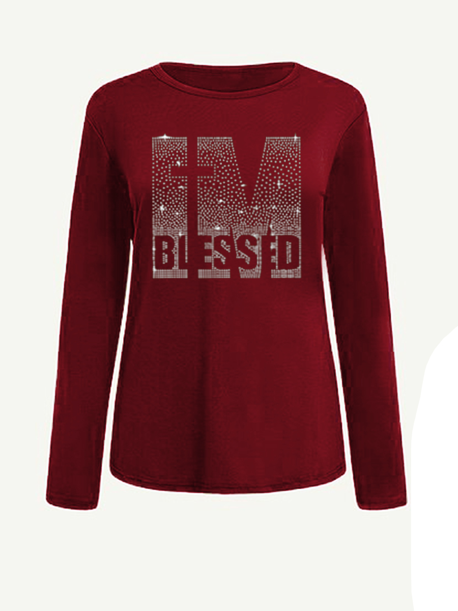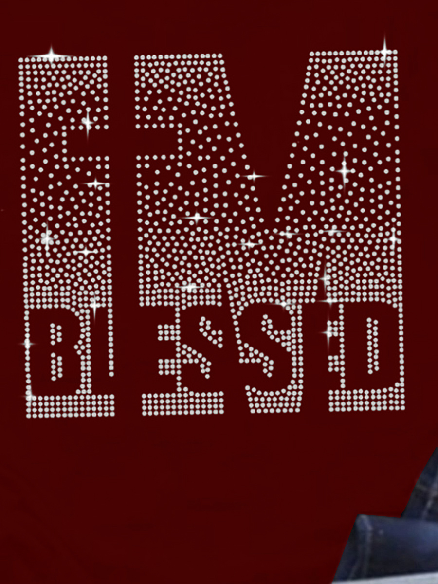 Home > Plus Size > Plus Size Top > Plus Size T-shirt > LW Plus Size Rhinestone Blessed Letter T-shirt