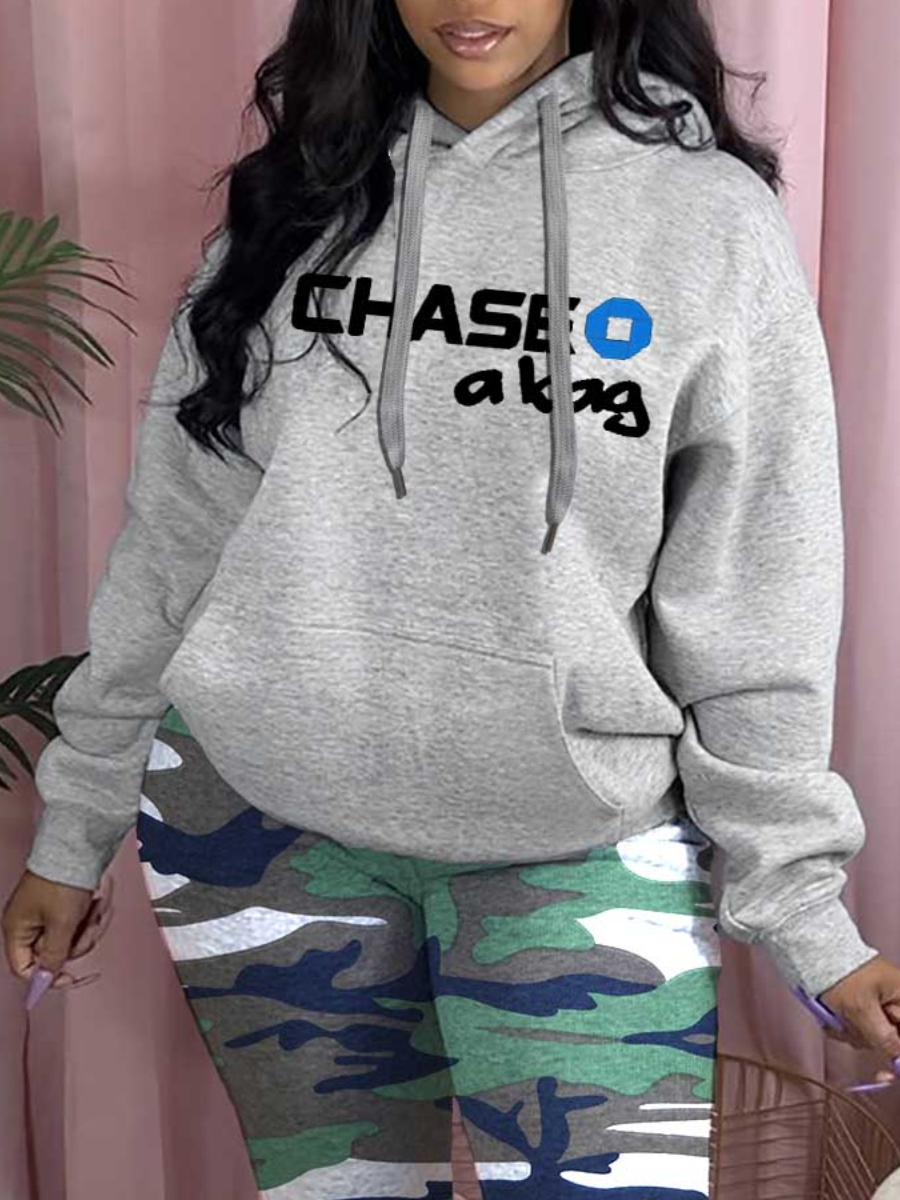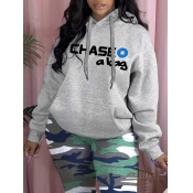 Home > Tops > Hoodie > LW COTTON Letter Print Kangaroo Pocket Hoodie