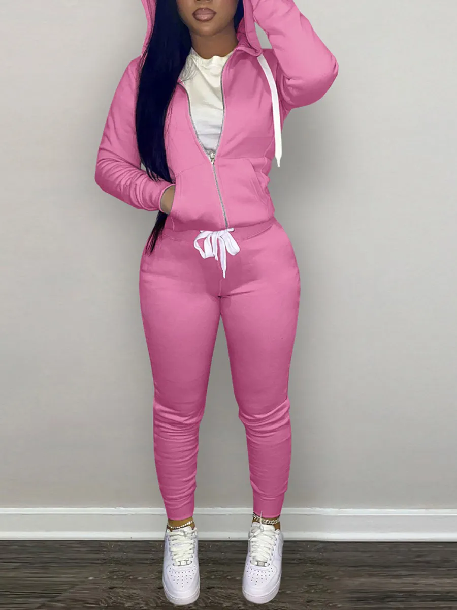 Home > Two Pieces > Two-piece Pants Set > LW BASICS Kangaroo Pocket Drawstring Tracksuit Set