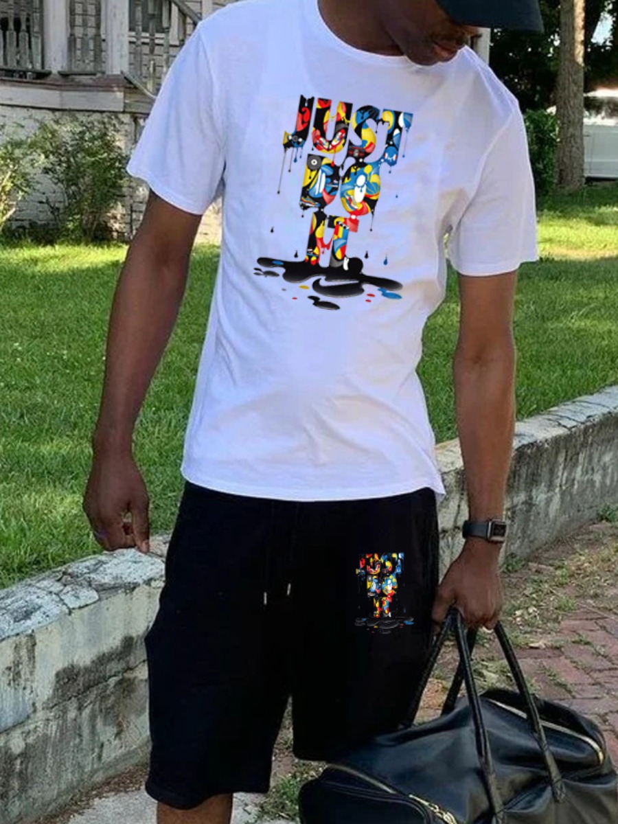 Home > Men Clothes > Two Pieces > Two-piece Shorts Set > LW Men Just Do It Letter Print Drawstring Shorts Set