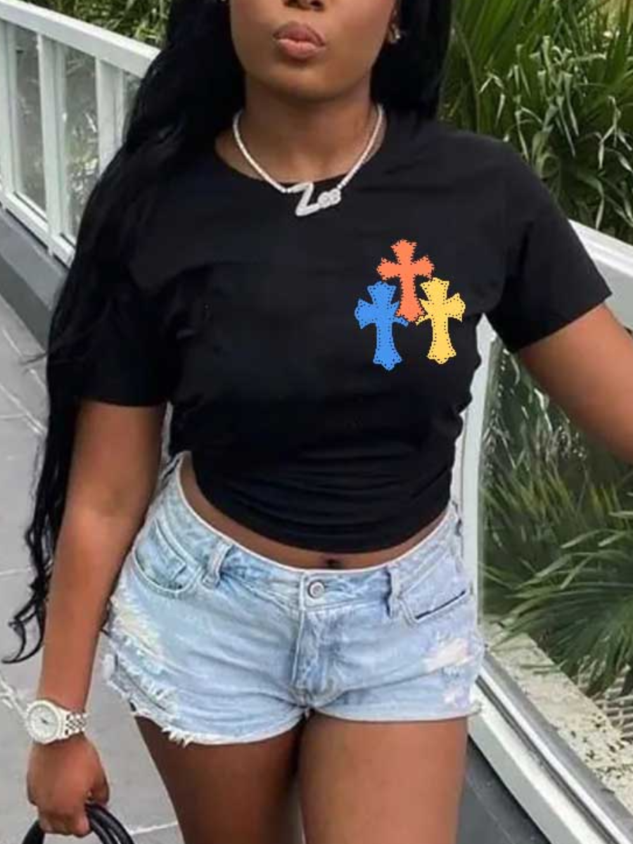 Home > Tops > T-shirt > LW Cross Print Regular Fit T-shirt