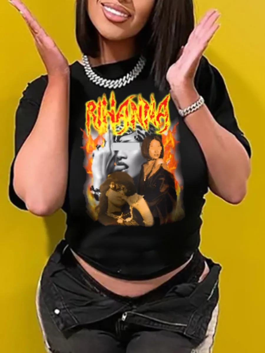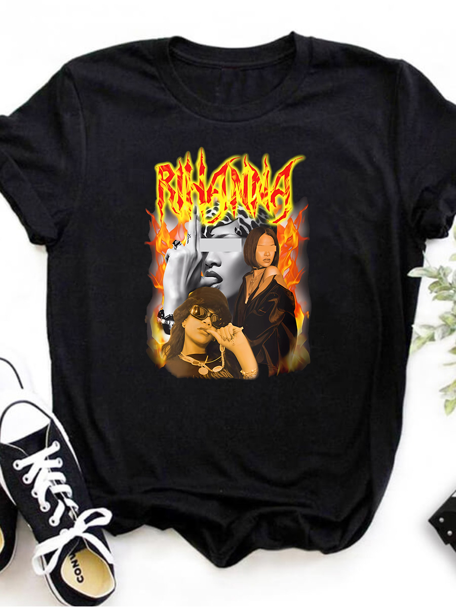 Home > Tops > T-shirt > LW Figure Flame Letter Print T-shirt