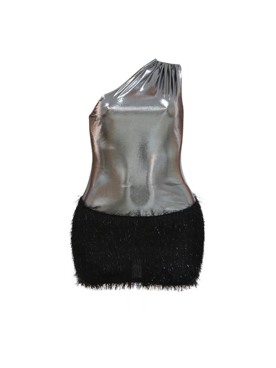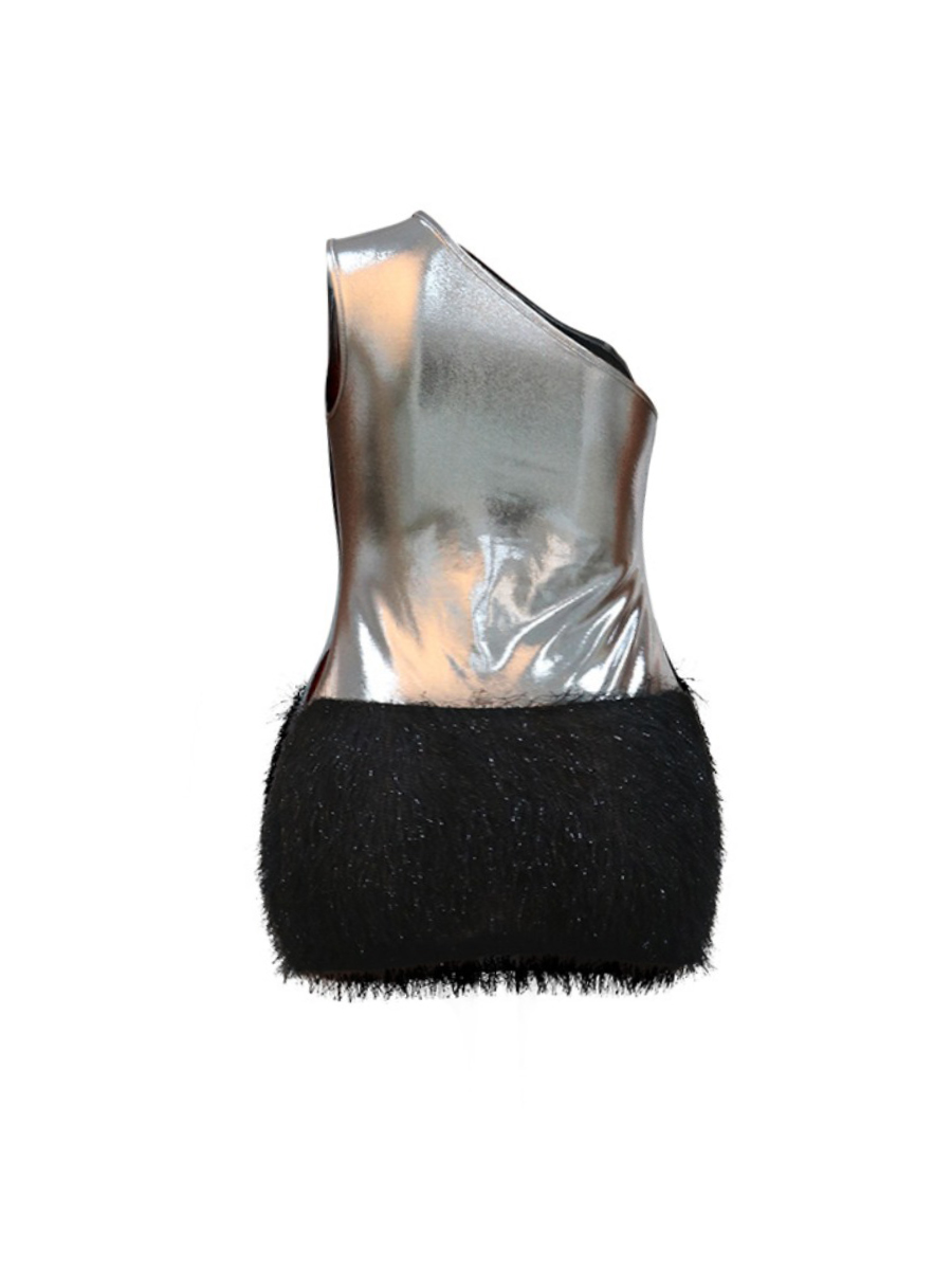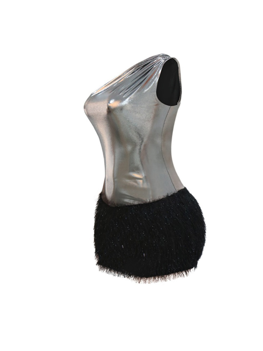 LW SXY Plus Size One Shoulder Plush Bodycon Dress