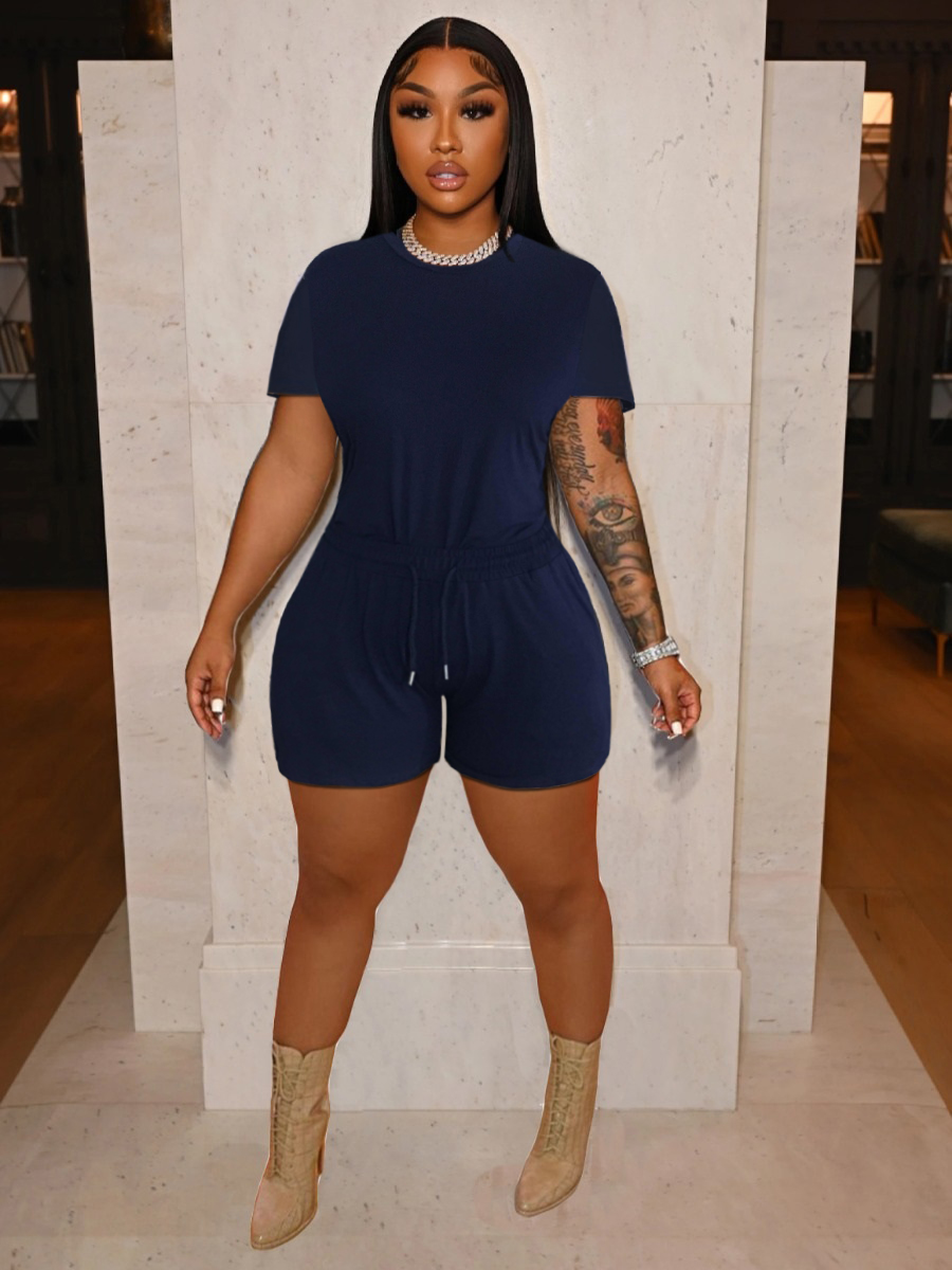 LW BASICS Plus Size Pocket Design Drawstring Shorts Set
