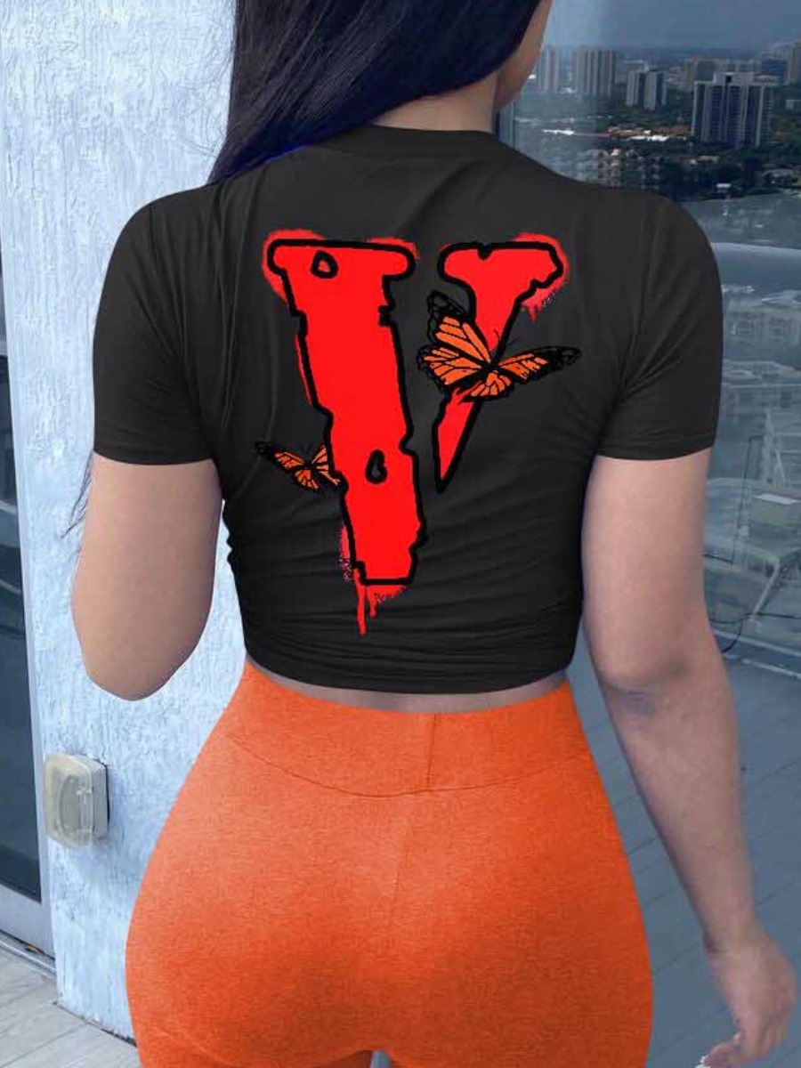 Home > Two Pieces > Two-piece Shorts Set > LW Butterfly Letter Print Shorts Set