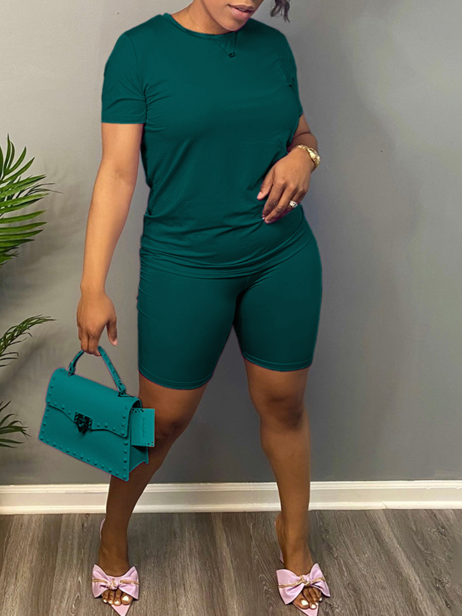 Home > Plus Size > Plus Size Two Pieces > Plus Size Two-piece Shorts Set > LW BASICS Plus Size Round Neck Skinny Stretchy Shorts Set