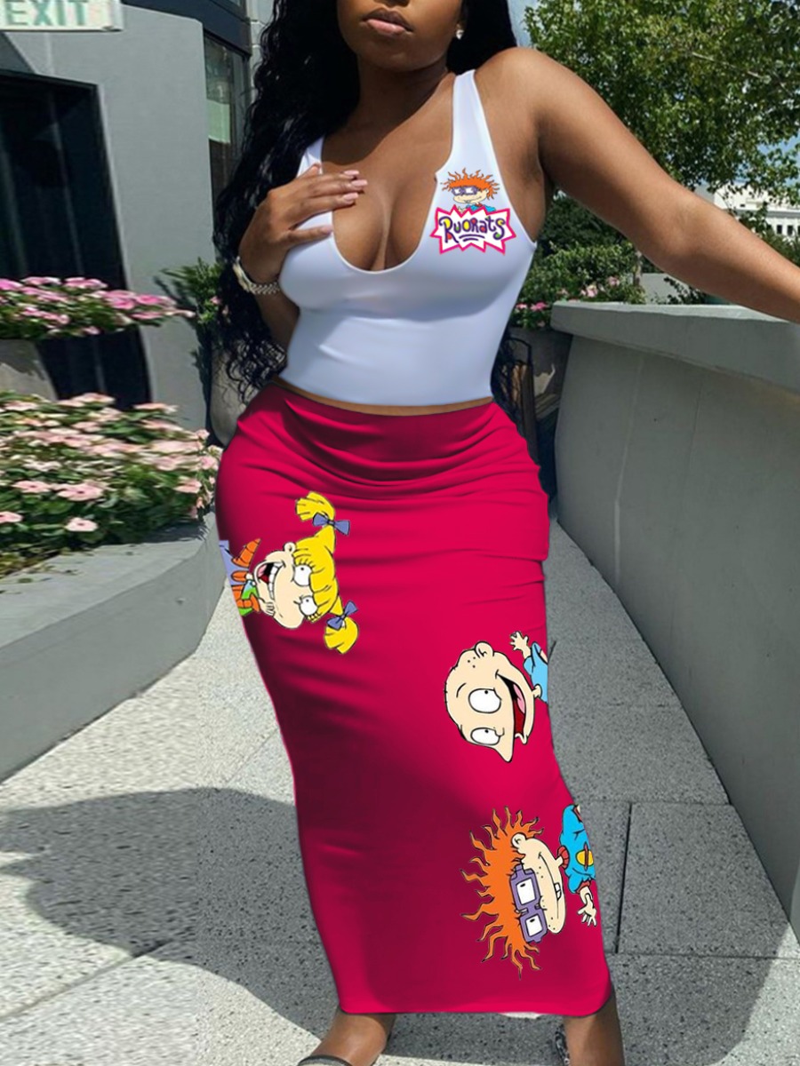 Home > Two Pieces > Two-piece Shorts Set > LW Cartoon Letter Print Shorts Set