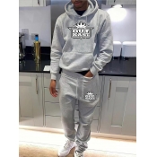 Home > Men Clothes > Two Pieces > Two-piece Pants Set > LW Men Crown Letter Print Kangaroo Pocket Tracksuit Set