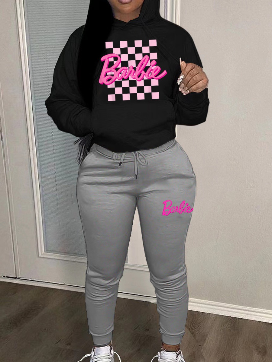 Home > Two Pieces > Two-piece Pants Set > LW Plaid Letter Print Kangaroo Pocket Tracksuit Set