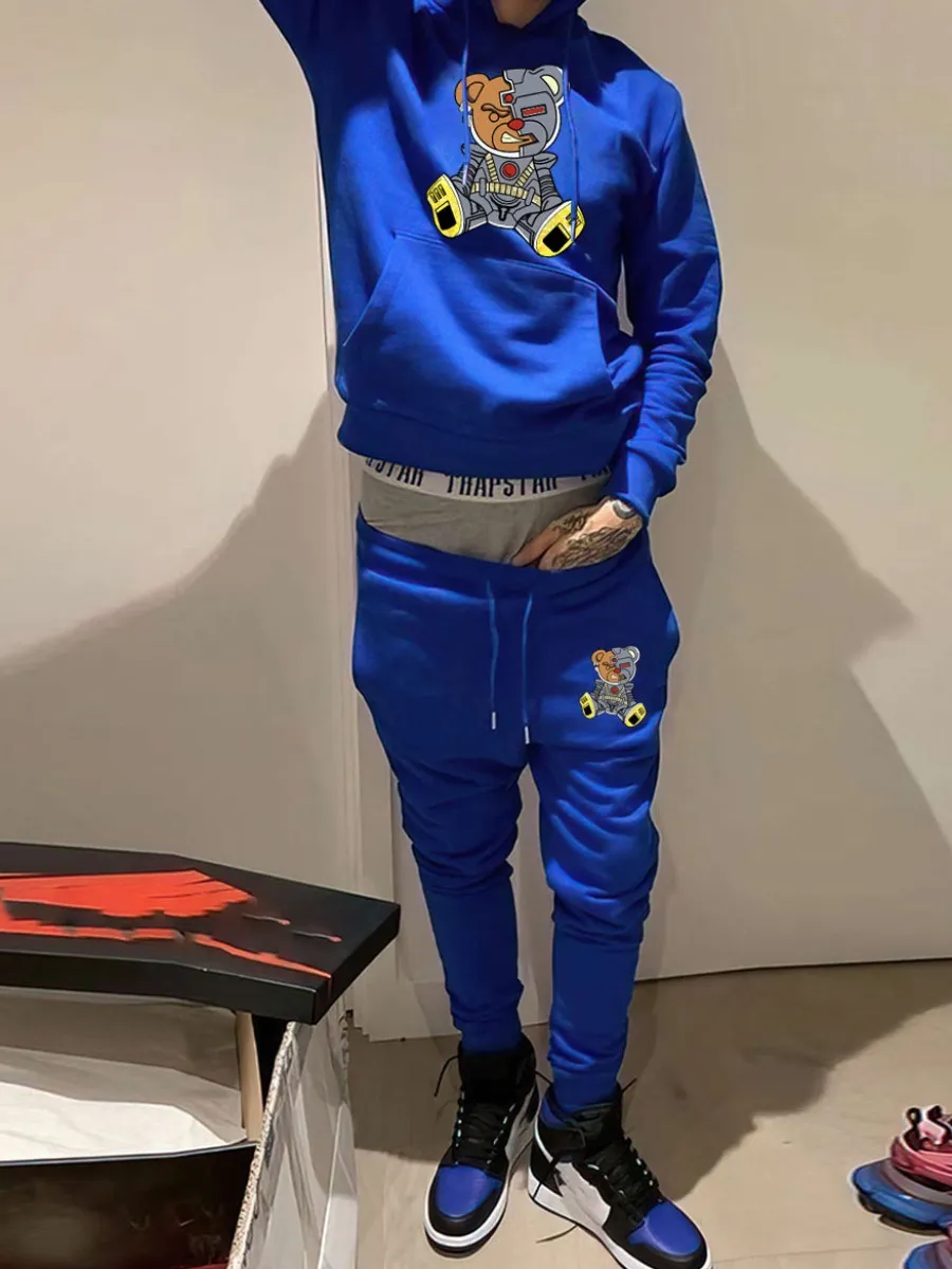 Home > Men Clothes > Two Pieces > Two-piece Pants Set > LW Men Cartoon Print Kangaroo Pocket Tracksuit Set