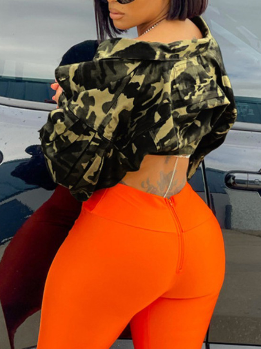 Home > Plus Size > Plus Size Outwear&Coats > Plus Size Coat&Jacket > LW Plus Size Camo Print Pocket Design Jacket