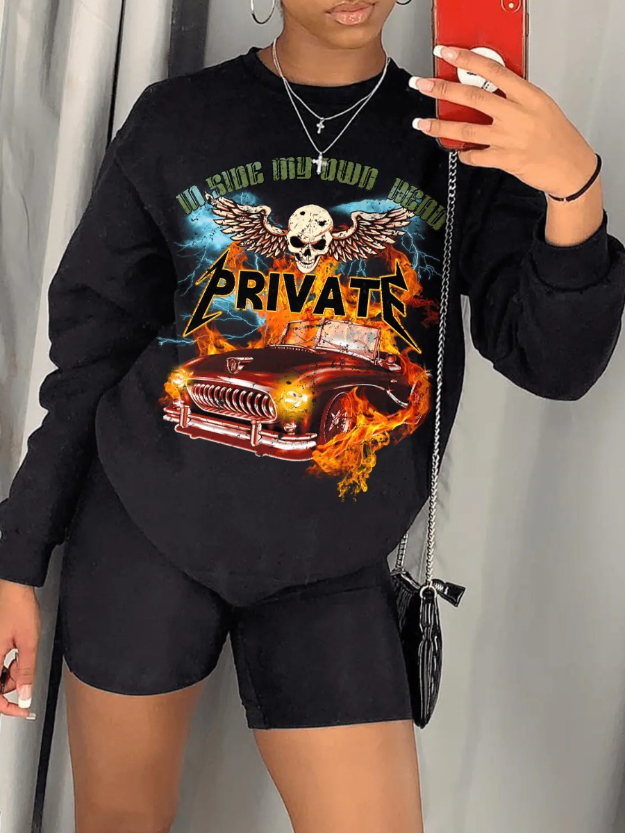Home > Tops > Sweatshirt > LW Butterfly Blaze Skull Head Print Sweatshirt