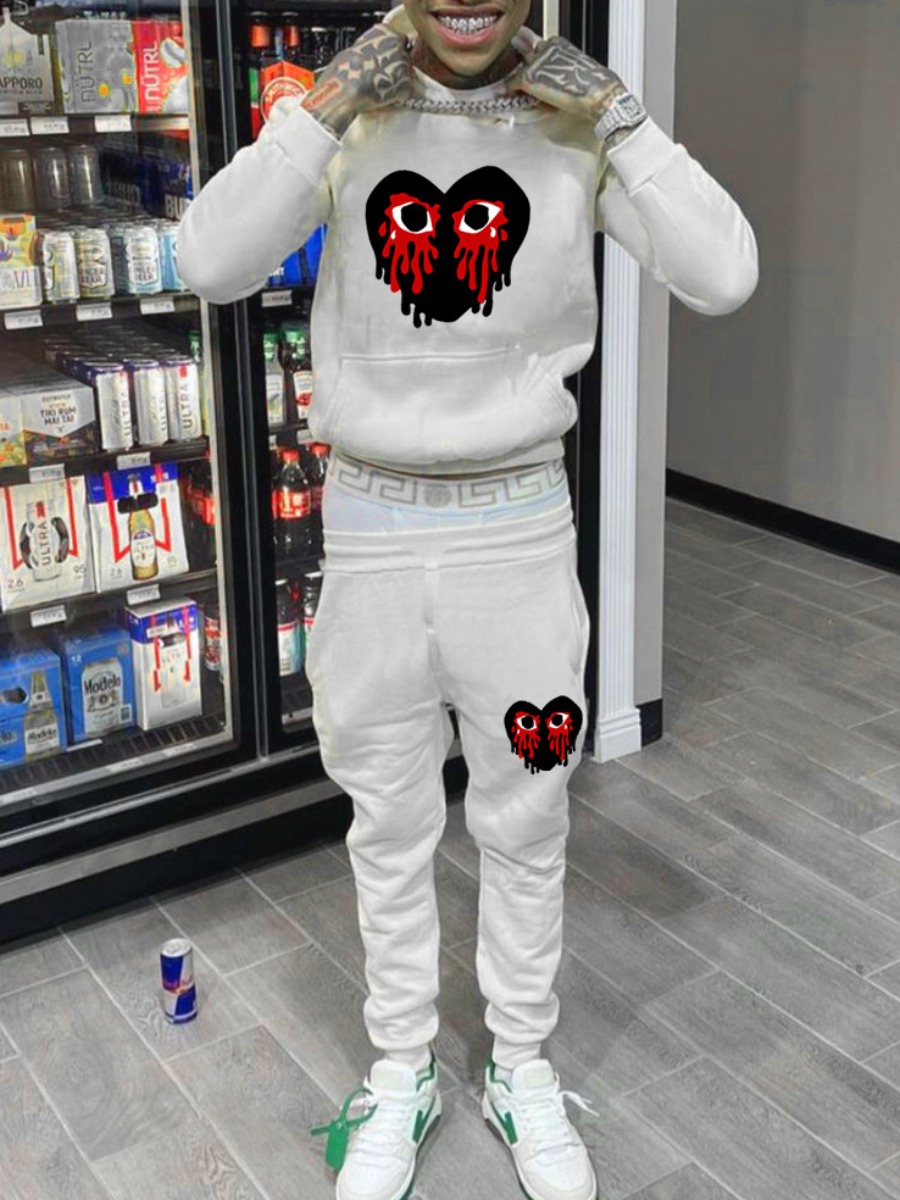 Home > Men Clothes > Two Pieces > Two-piece Pants Set > LW Men Heart Print Kangaroo Pocket Tracksuit Set