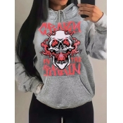 Home > Plus Size > Plus Size Top > Plus Size Sweatshirt&Hoodie > LW Plus Size Skull Head Letter Print Kangaroo Pocket Hoodie