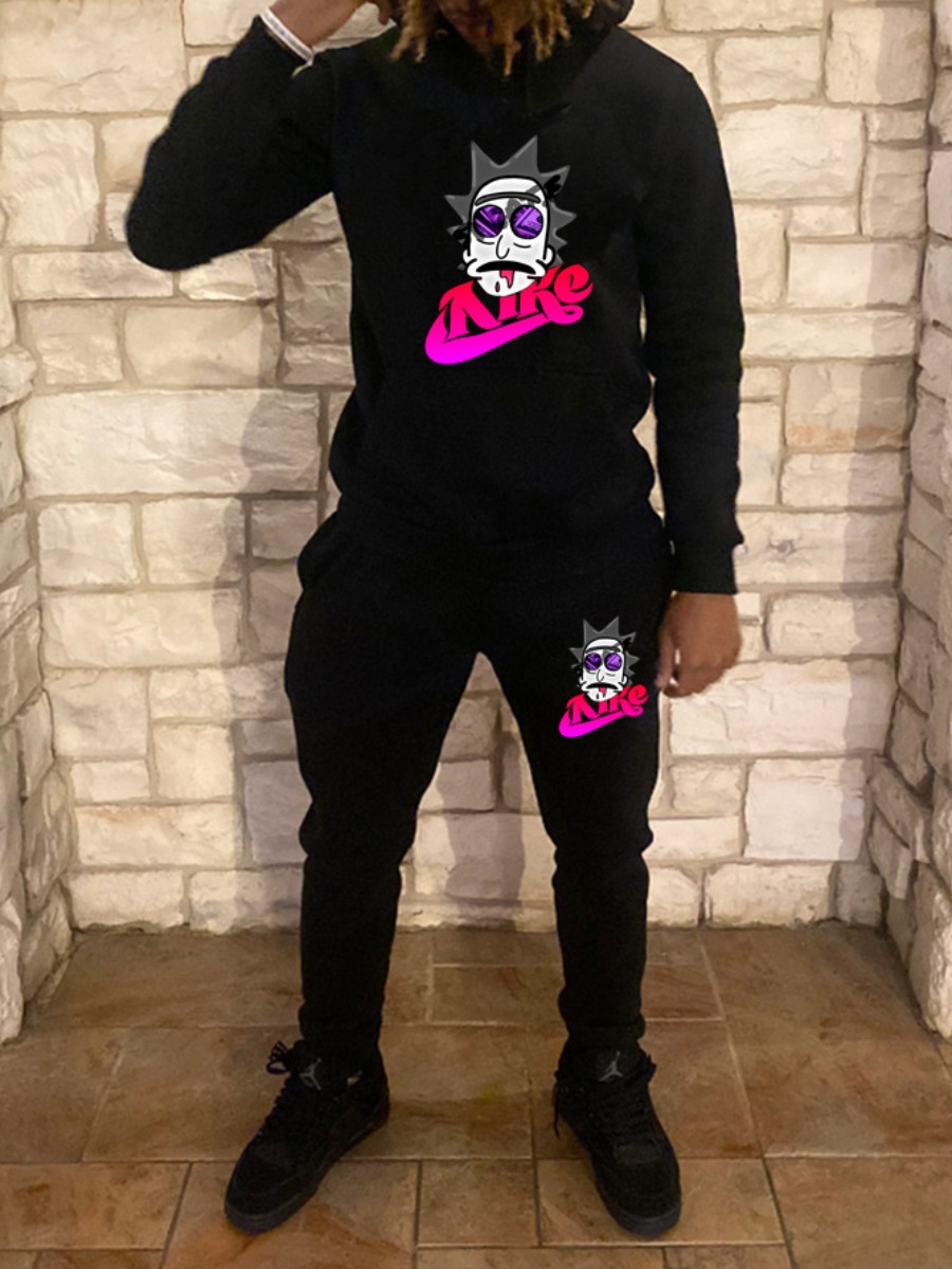 Home > Men Clothes > Two Pieces > Two-piece Pants Set > LW Men Cartoon Letter Print Kangaroo Pocket Tracksuit Set