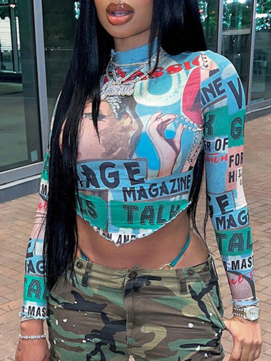 Home > Tops > T-shirt > LW SXY Crop Top Figure Letter Print Lettuce Trim T-shirt